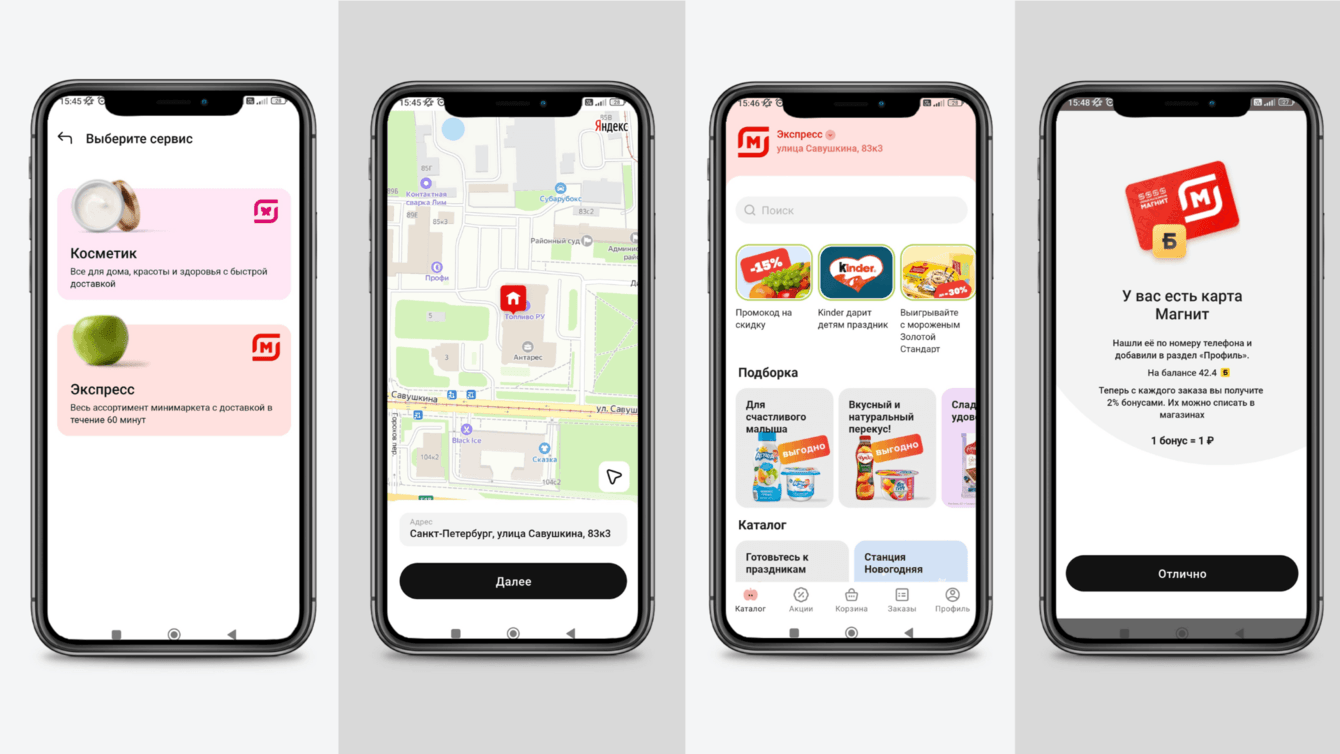 • Интеграция с онлайн-картами и системами расчета логистики доставок: оффлайн-точки и дарксторы «Магнита» имеют площадь покрытия в рамках которых принимают и комплектуют заказы.