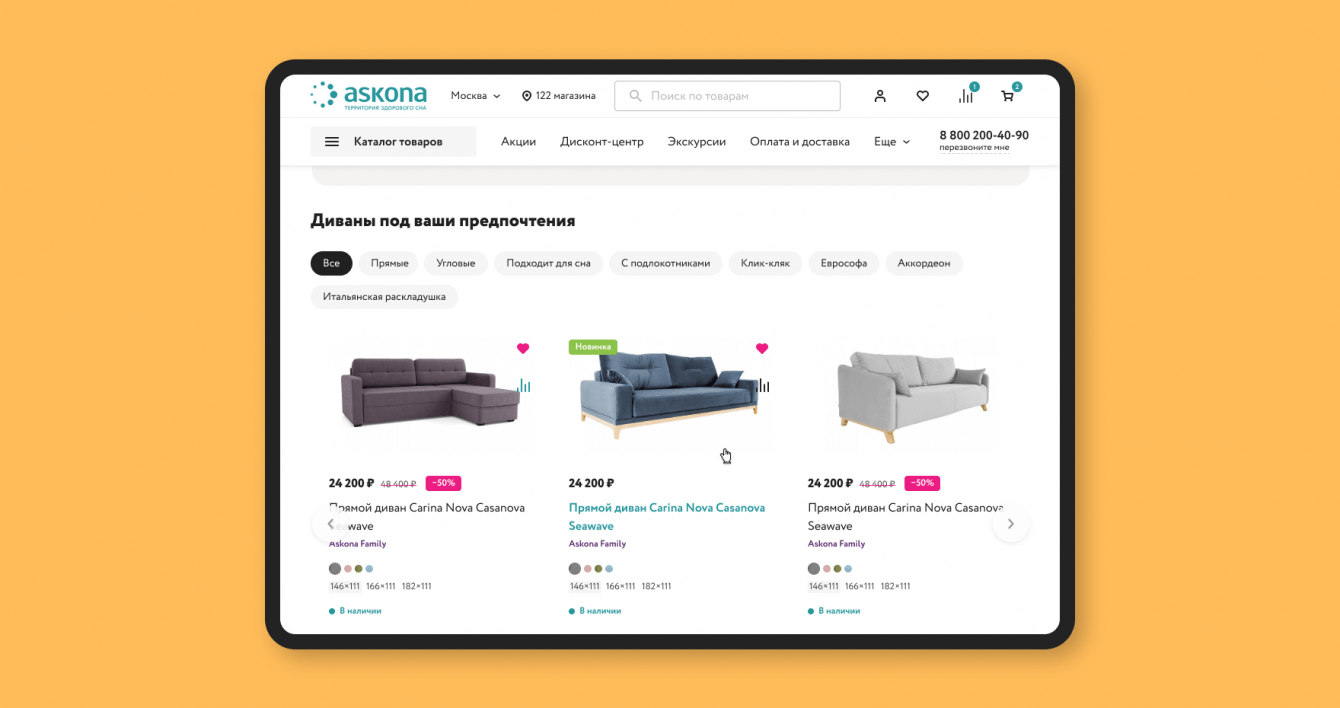 — Создали технологичные интерфейсы для подбора диванов и матрасов. Их легко перенести на другие продукты «Асконы».