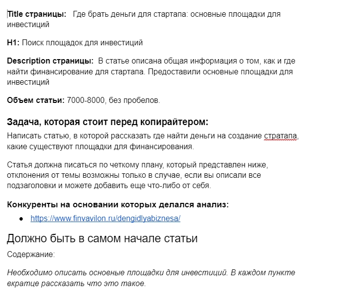 И вот к такому ТЗ для копирайтера мы пришли: