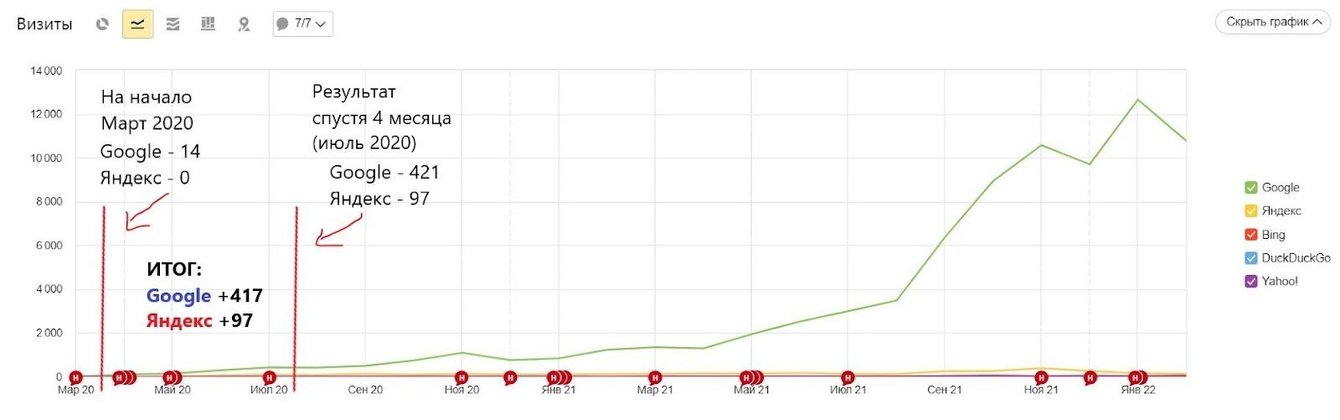 Информация взята с сайта: https://spark.ru/user/143543/blog/96091/realnoe-seo-dlya-startapov-s-0-do-13-800-posetitelej-iz-poiska