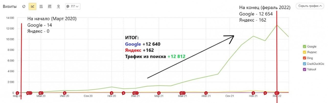 За 2 года мы увеличили поисковый трафик из 14 человек до 13 800.