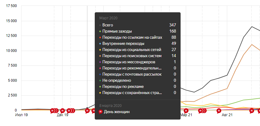 На конец (февраль 2022) общий трафик — ≈ 17 000 посетителей в месяц