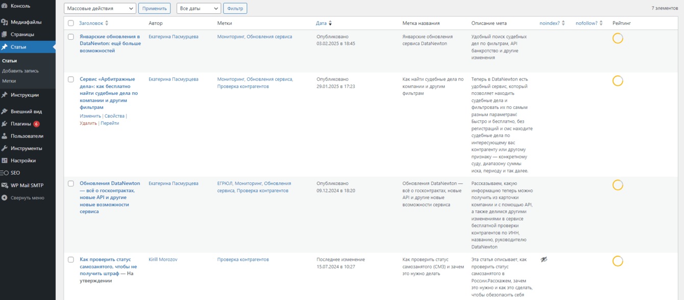 После установки WordPress, мы выбрали и настроили необходимые плагины для удобного управления статьями и новостями. Было важно, чтобы блог был интуитивно понятным и позволял команде DataNewton без труда добавлять и редактировать материалы.