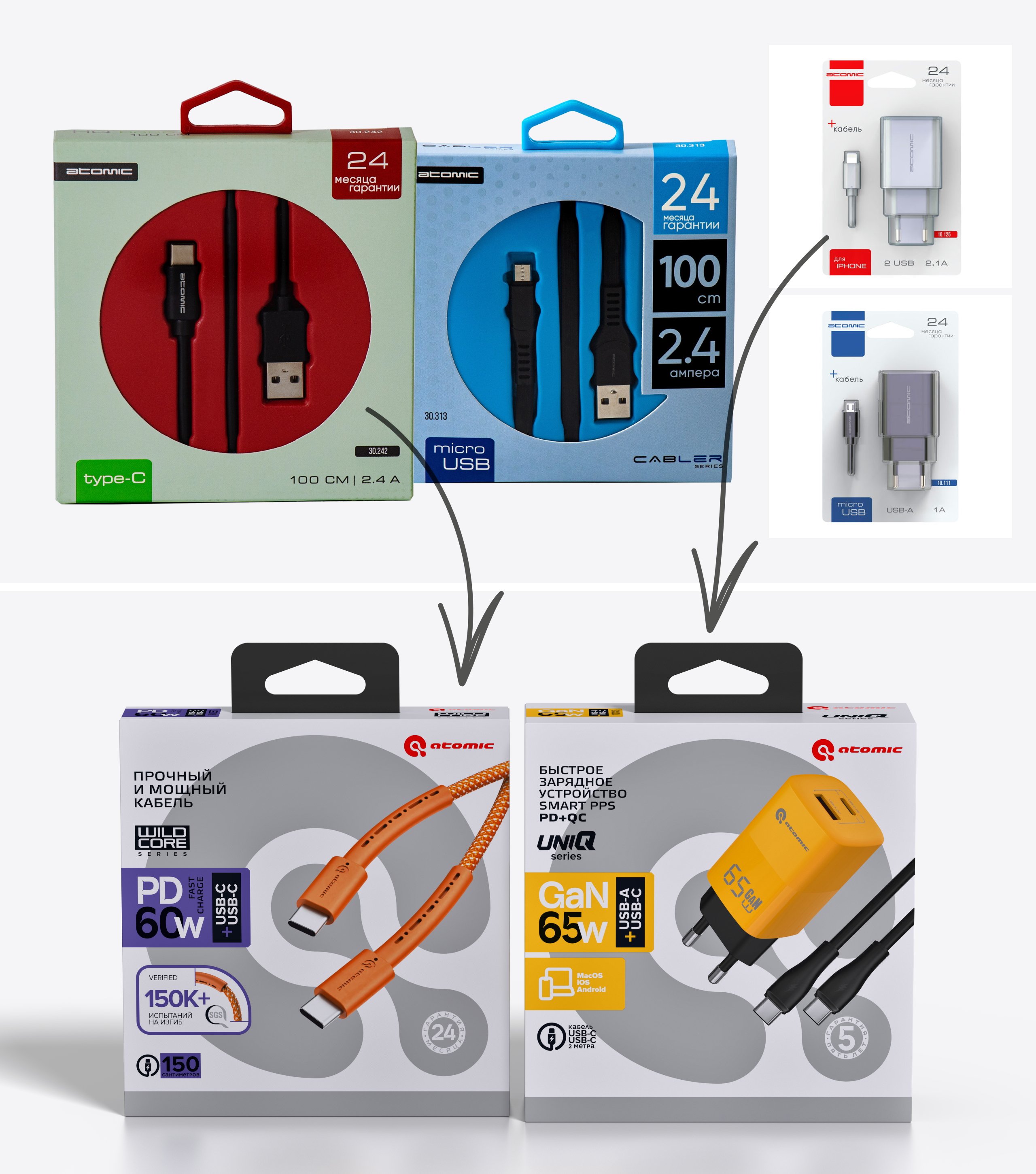 Бренд ATOMIC — один из лидеров белорусского рынка аксессуаров для мобильных устройств — столкнулся с необходимостью не просто обновления, а радикальной перезагрузки. Устаревший визуальный стиль, потерявший актуальность, не отражал амбиции компании и не выделял её среди конкурентов. Задача заключалась в создании мощной, современной идентичности, способной привлечь более широкую аудиторию и укрепить рыночные позиции.