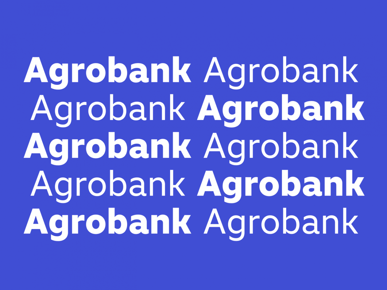 Фирменный шрифт узбекистанского коммерческого банка «Агробанк» продолжает концепцию логотипа и паттерна, поддерживая их четкие геометрические формы.