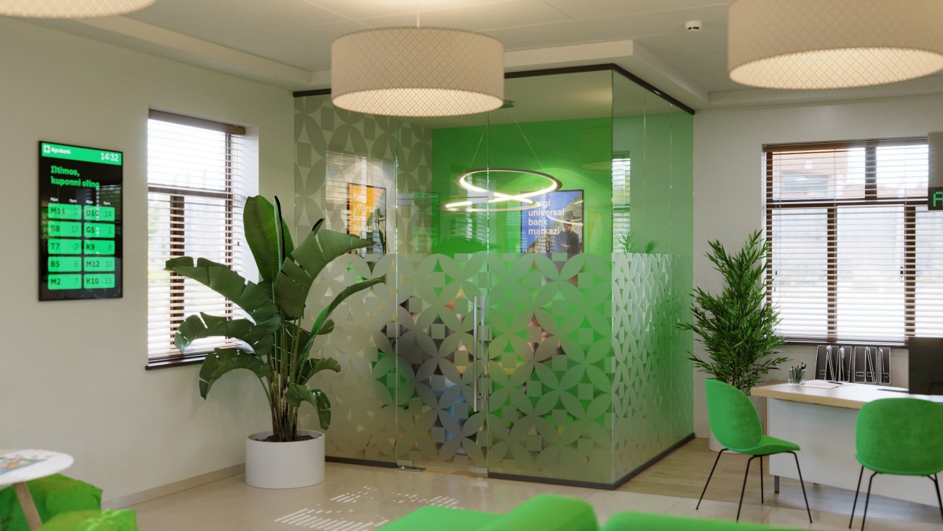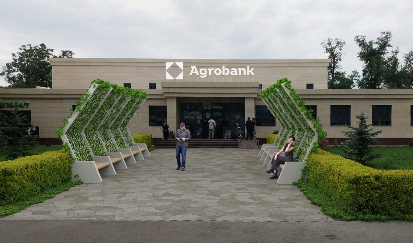 «Агробанк» включает двенадцать региональных управлений, сто семьдесят филиалов и еще кучу самых разных подразделений. Для них на базе созданной айдентики было придумано оформление внутри и снаружи.