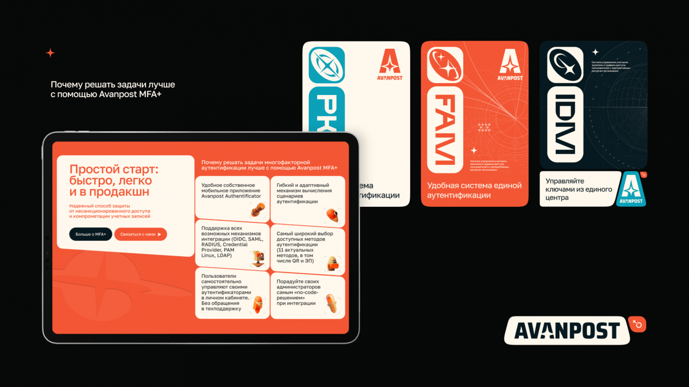 AVANPOST — ведущий российский вендор в области безопасности идентификационных данных. Мы обновили айдентику компании и теперь AVANPOST путеводная звезда в мире информационной безопасности, а его сотрудники — команда космического корабля.