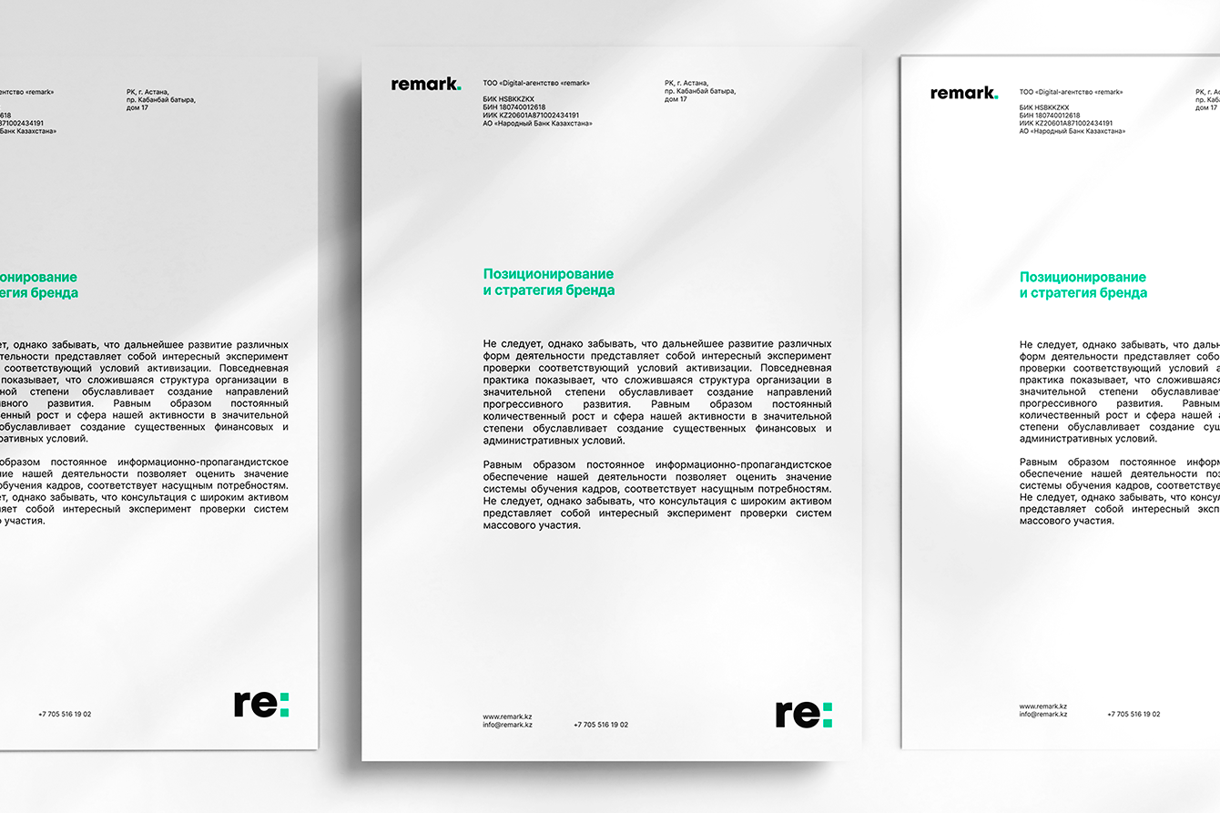 Мы развили идею с использованием “re:” как атрибута бренда, соединяющего созвучную семантику. Новое прочтение выполнено в стилистически согласованном шрифтовом стиле и отражает динамику, собираясь из логотипа "remark." в фирменный знак "re:", предполагающий различные варианты дальнейшего использования.