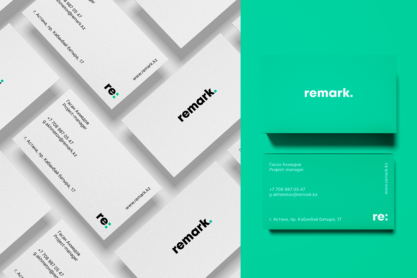 Мы развили идею с использованием “re:” как атрибута бренда, соединяющего созвучную семантику. Новое прочтение выполнено в стилистически согласованном шрифтовом стиле и отражает динамику, собираясь из логотипа "remark." в фирменный знак "re:", предполагающий различные варианты дальнейшего использования.