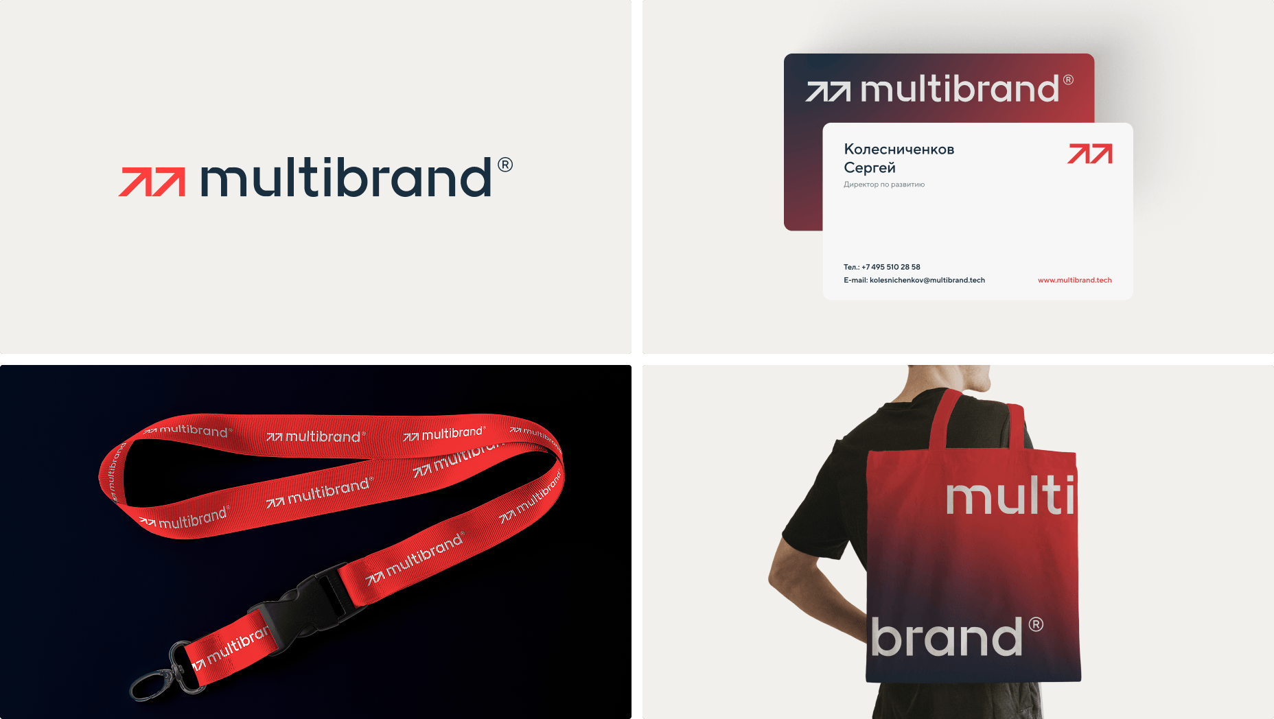 В цветовой палитре доминируют контрастные оттенки красного, серо-синего и серого, дополненные фирменным градиентом, который добавляет глубины и энергии. Минималистичный шрифт поддерживает современный и уверенный тон бренда.