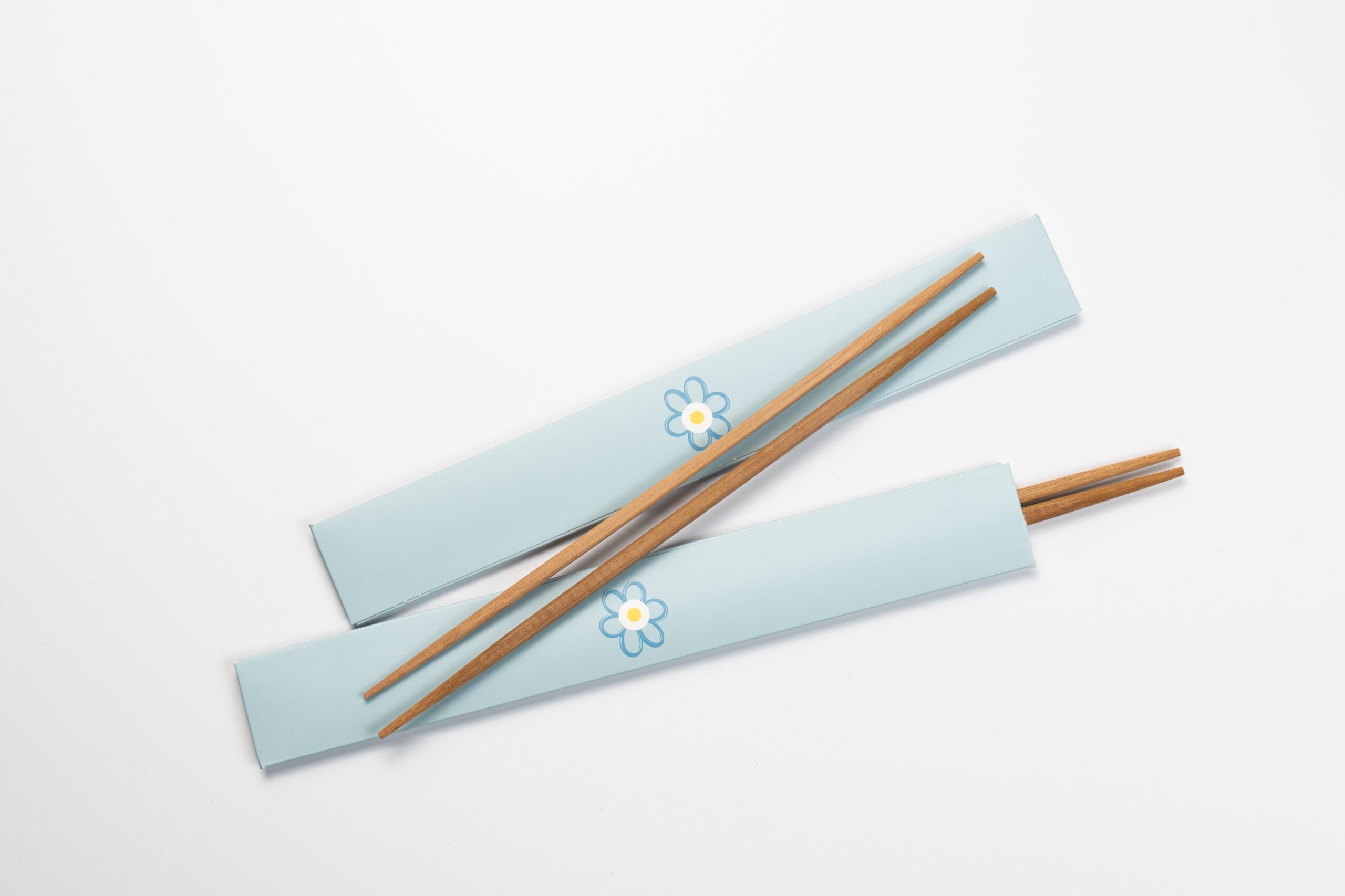 Заказали необычные двусторонние палочки, которых ни у кого не было. Их везли из Китая. Конверты для палочек сделали из плотного картона с цветами.