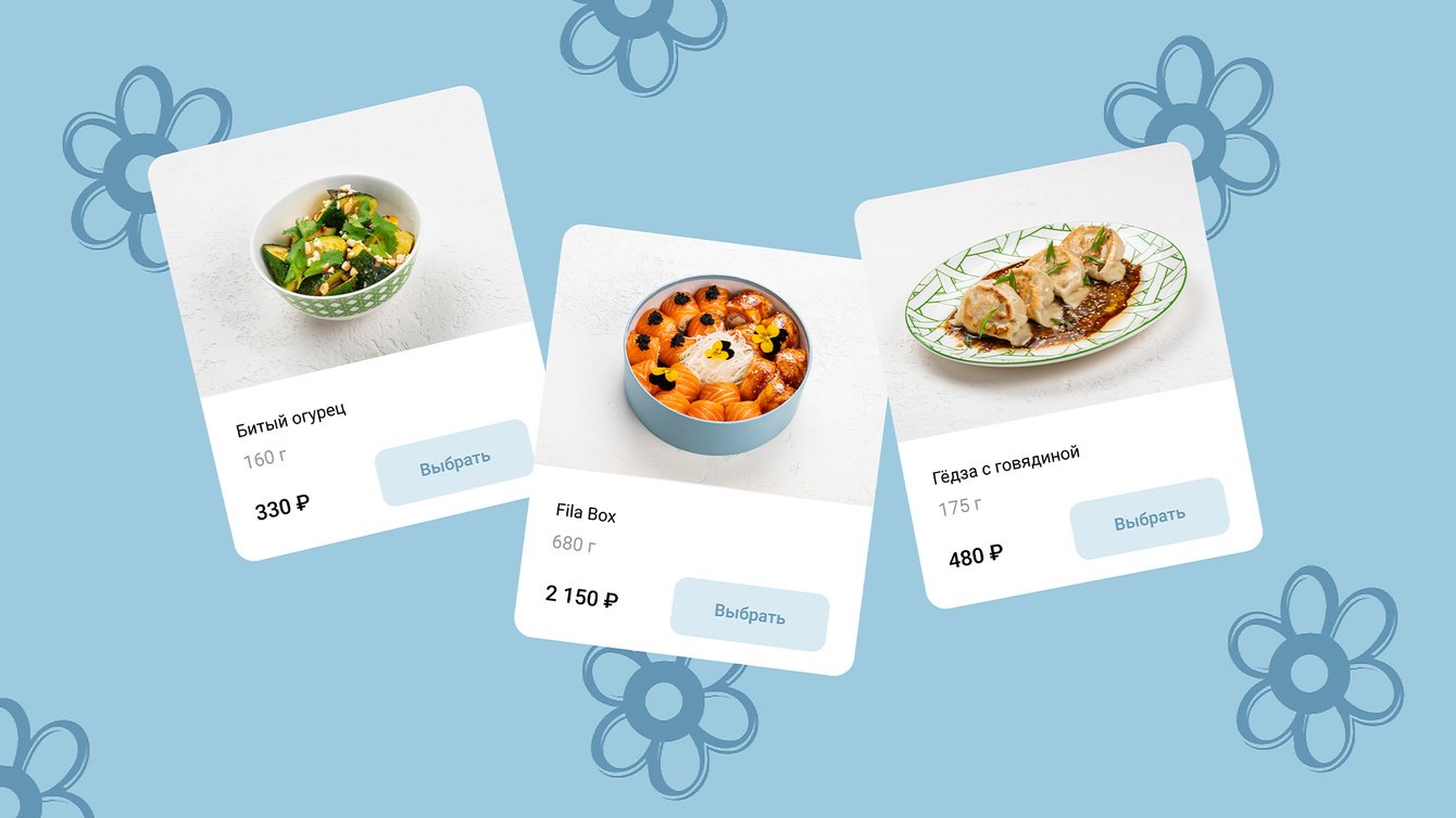 Карточки товара выделяются на фоне, а сочные фото мотивируют кликнуть, чтобы скорее попробовать эту красоту.