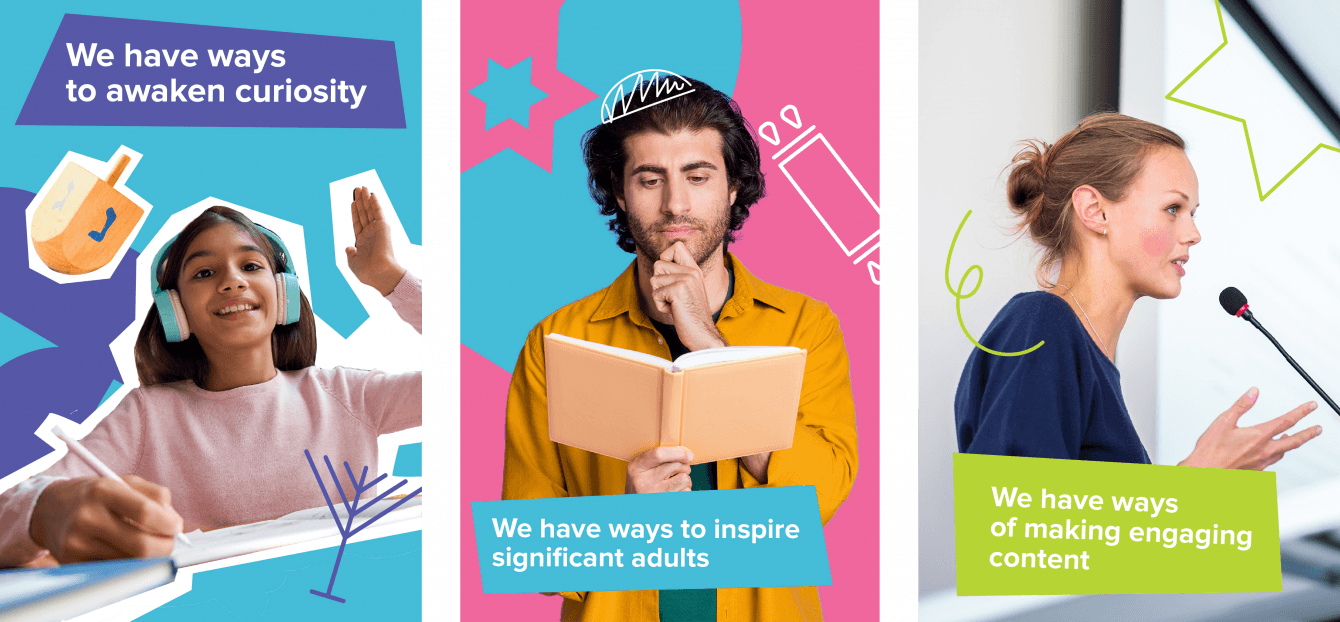 Айдентика находит продолжение в суббрендах: она становится более сдержанной, строгой, работает на взрослых ― родителей, учителей, рабанит и мадрихов.