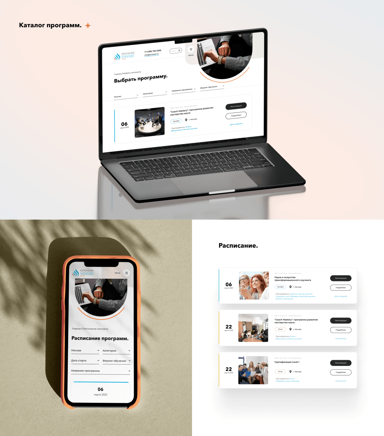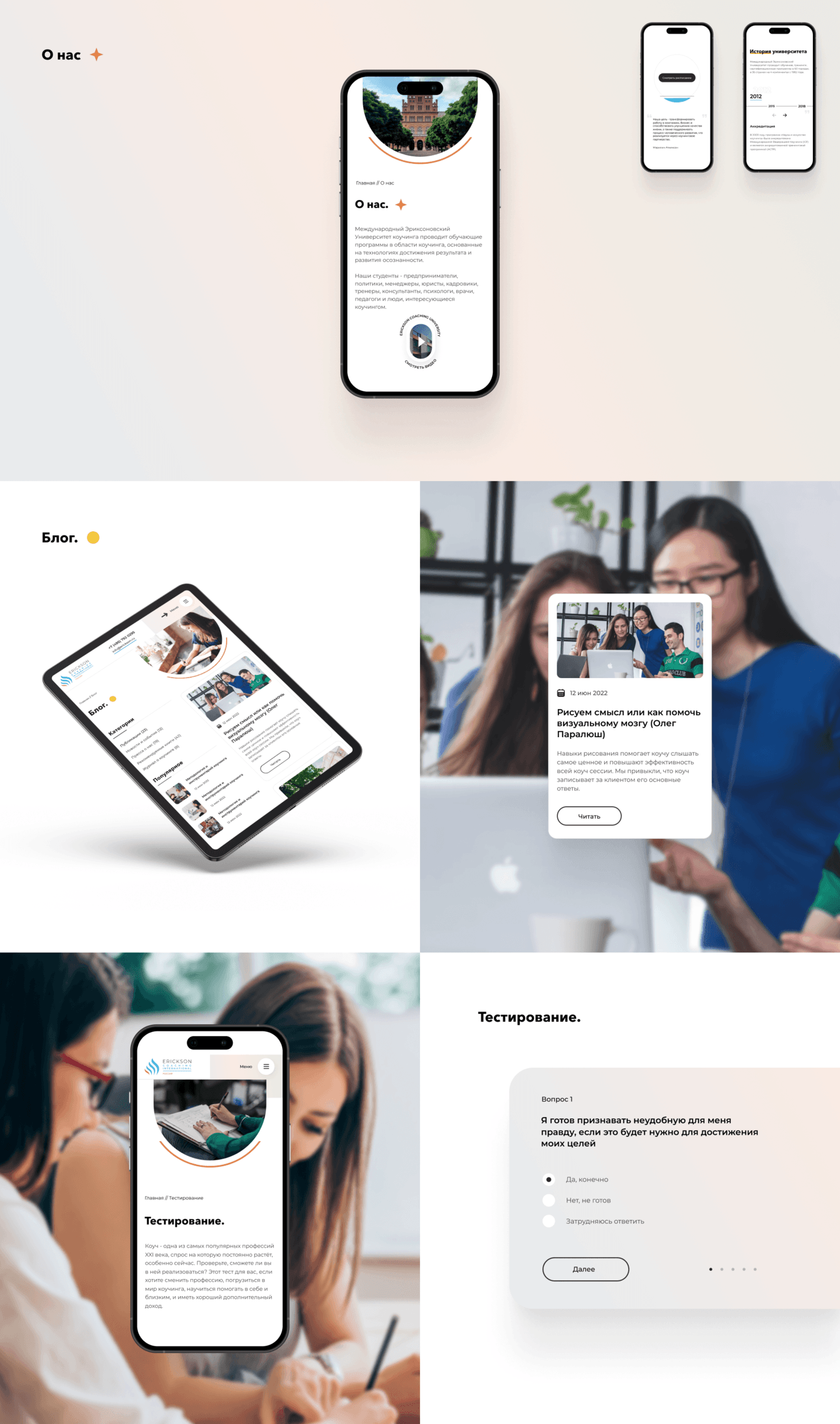 Такой поэтапный и детально проработанный подход позволил нам создать функциональный, современный и эмоционально насыщенный сайт, который соответствует амбициям и статусу Международного Эриксоновского Университета коучинга.