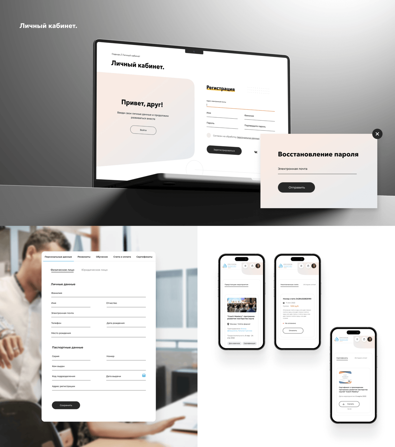 Важнейший блок для обеспечения высокого уровня сервиса, где пользователь проходит весь путь от регистрации до мониторинга своих программ. Личный кабинет разделён на несколько типов пользователей:
