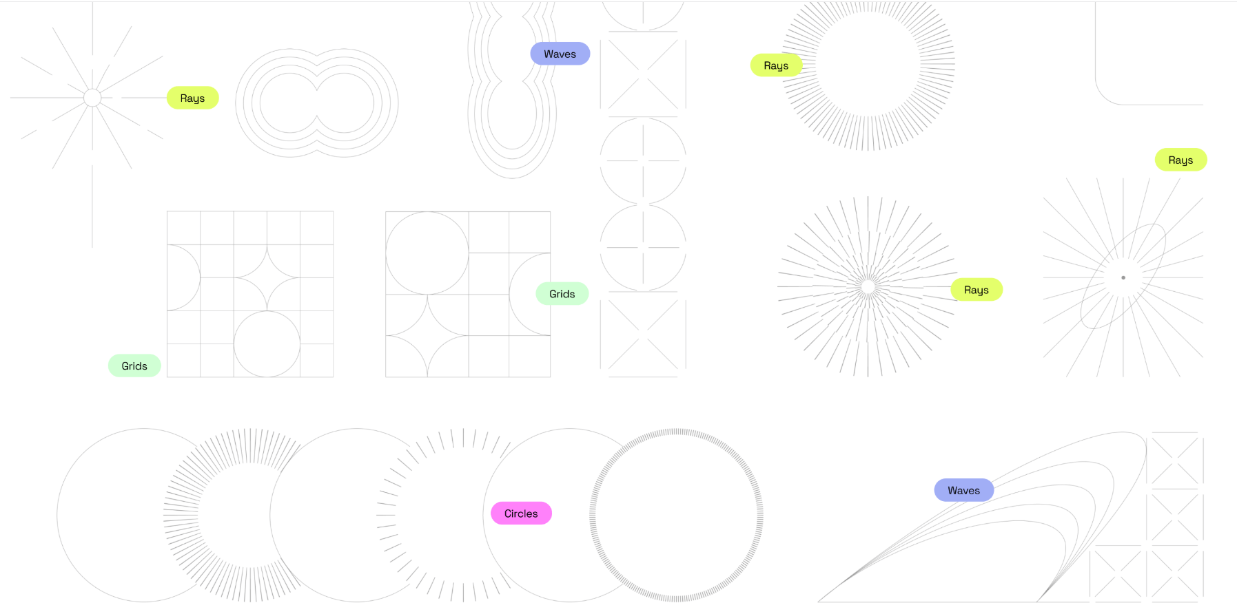 Разрабатывая креативную концепцию, мы объединили глитч-арт и шум с неоновой цветовой палитрой; линейные иллюстрации и типографику с ретро-эстетикой в современном исполнении. Создали систему визуальных элементов и модулей для обеспечения единого вида в дизайне на сайте.