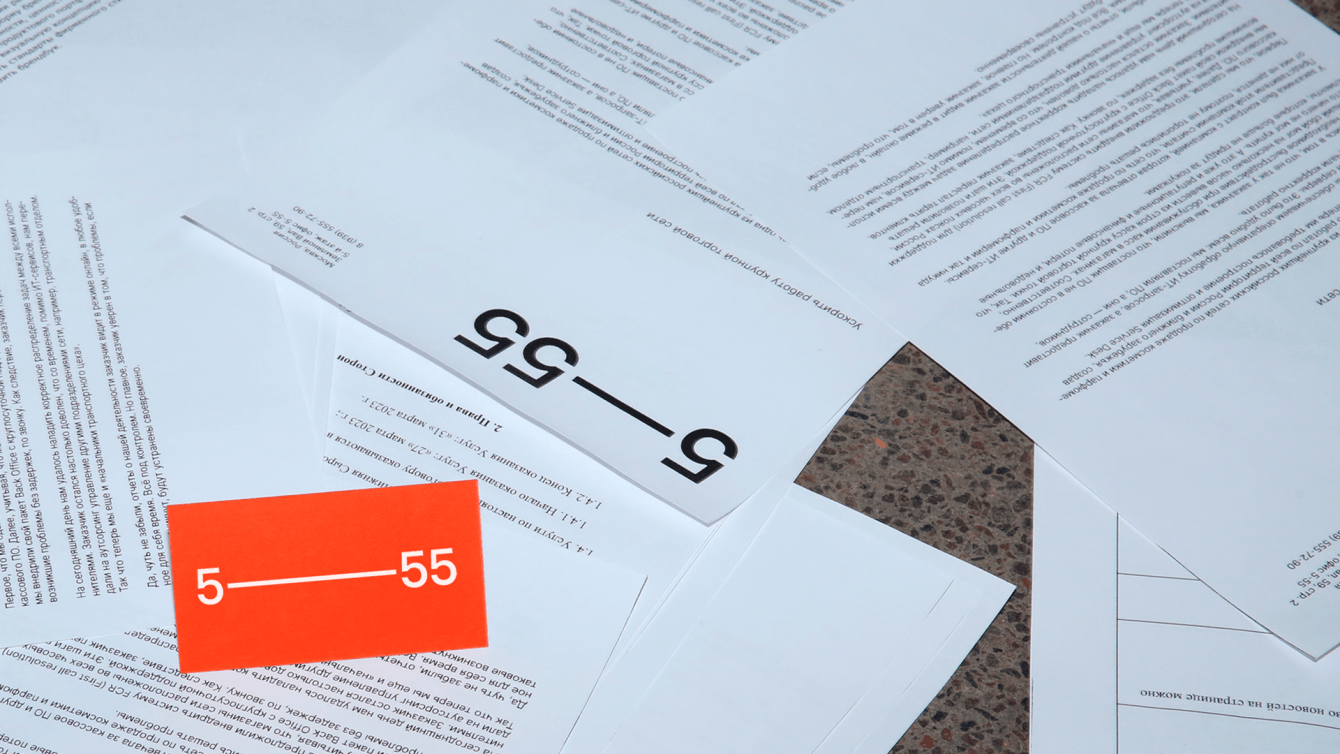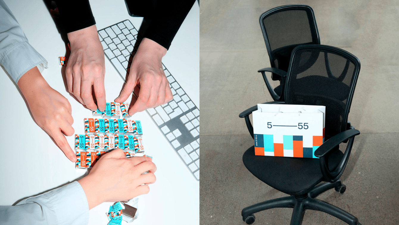 Мы разработали фирменный стиль и сайт компании, продумали визуальную систему для офлайн и digital-каналов и сделали клевый мерч. Необычная, слегка сумасшедшая и харизматичная коммуникация бренда — символ человеческой симпатии, клиентоцентричности и бескомпромиссного уровня сервиса, которые раскрываются в процессе сотрудничества 5–55 и ее клиентов.