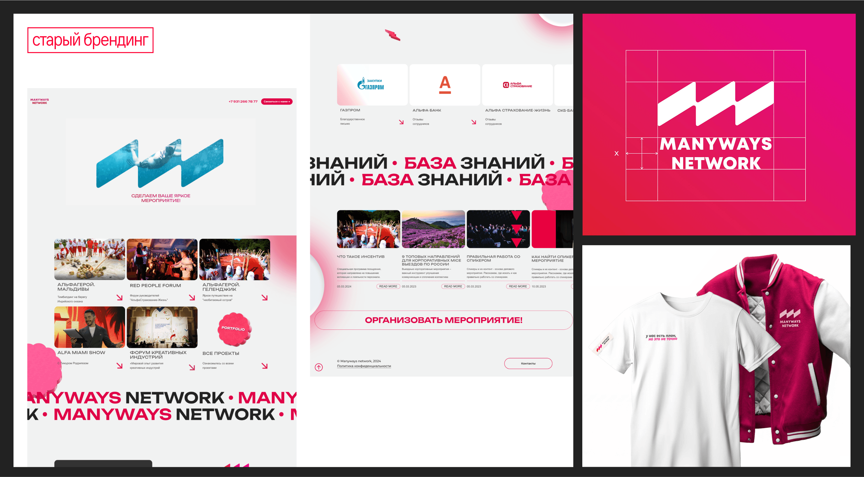 Агентству было почти 5 лет, когда стало понятно, что визуал не передаёт ценности и не отстраивает от конкурентов. Сотрудники и руководители команд у клиентов молодеют, и для них визуал — важный маркер. Любое мероприятие связано с брендированием, и хочется, чтобы уже на этапе знакомства было видно серьезное отношение к визуальной стороне работы. Плюс болела история с сайтом — он давно висел в сети, был недоделан, без контактов и ссылок. Таня, основатель и генеральный директор Manyways, хотела, чтобы у агентства появилось своё узнаваемое лицо.