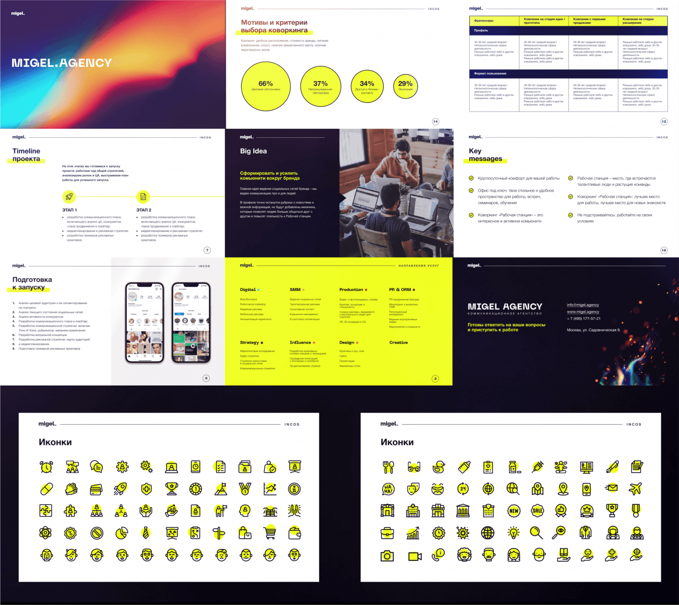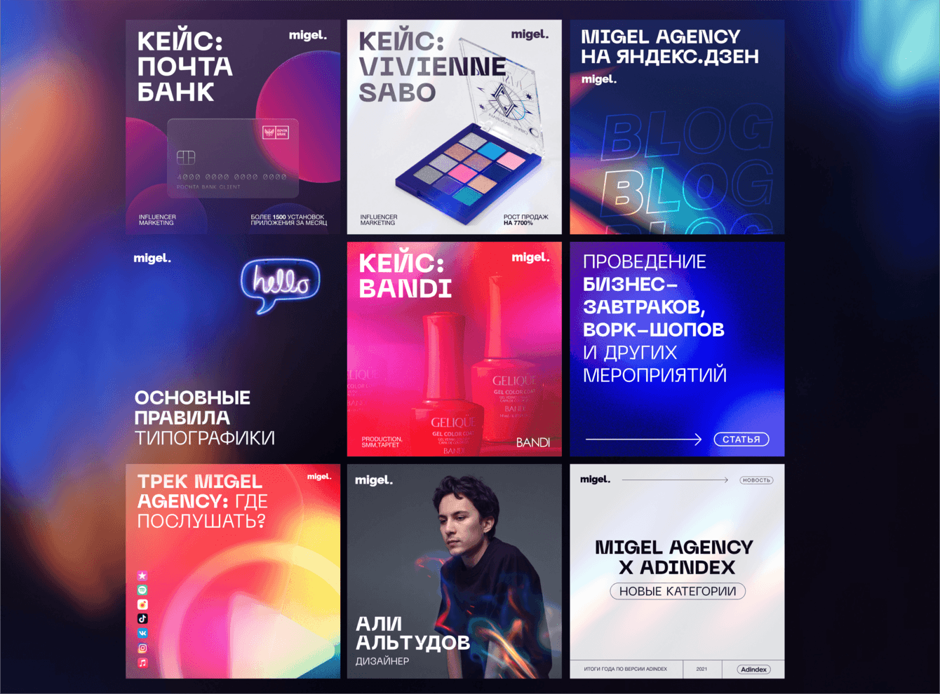 MIGEL AGENCY — агентство полного цикла, оказывающее маркетинговые услуги с экспертизой в проведении рекламных кампаний 360°. Основной задачей было четко определить позиционирование, отразить ценности, характер агентства и продемонстрировать это в обновленном фирменном стиле.