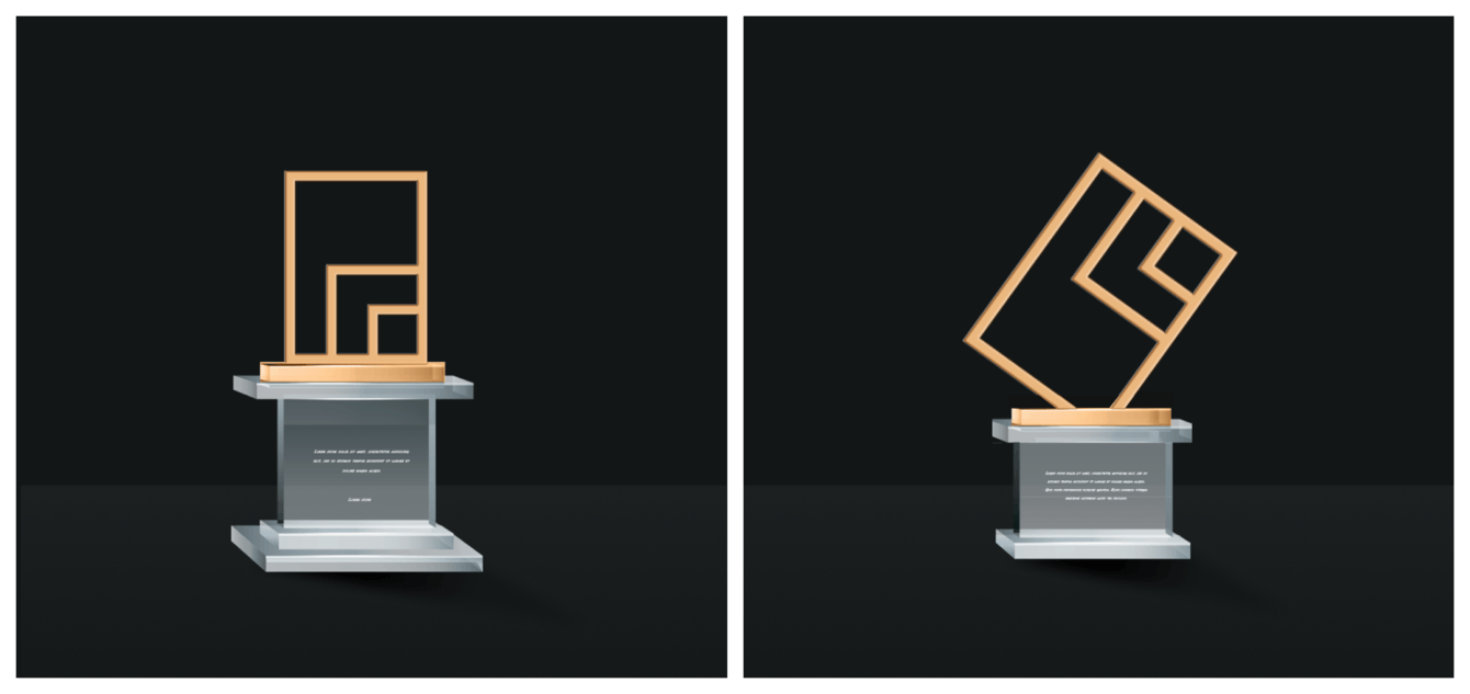 Одним из самых ответственных этапов стала разработка наградной статуэтки. Мы понимали, что именно эта статуэтка станет символом успеха, наградой, которую участники конкурса будут гордо получать за свои достижения. Как уже отмечалось при разработке логотипа, концепция награды должна была органично продолжать визуальное оформление бренда, но здесь возникали дополнительные вызовы – вопросы производства и последующего использования продукта.