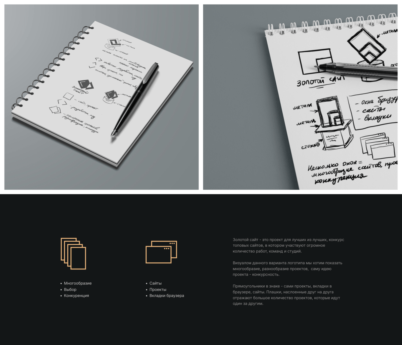 Одной из ключевых задач было объединить «Золотой сайт» и «Золотое приложение» под единой визуальной концепцией и символом, который транслировал бы ценности и престиж конкурса.