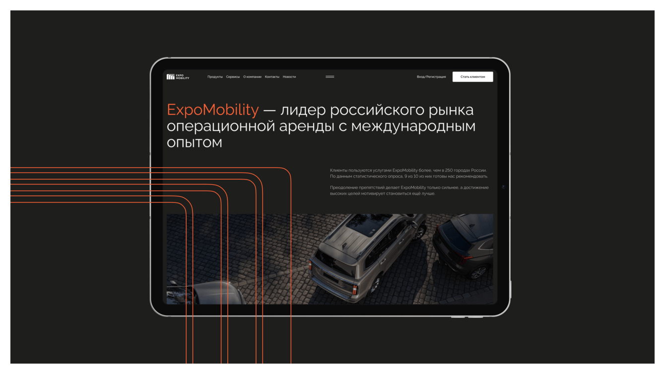 Бренд «Экспомобилити» — это мобильность и гибкость, которые раскрываются в подходе работы с клиентами, сотрудниками и партнерами и являются отличительной чертой компании на достаточно консервативном рынке операционной аренды. Для нас было важно сохранить историю и опыт международного сотрудничества, но при этом сформировать концепцию, отражающую российскую компанию.
