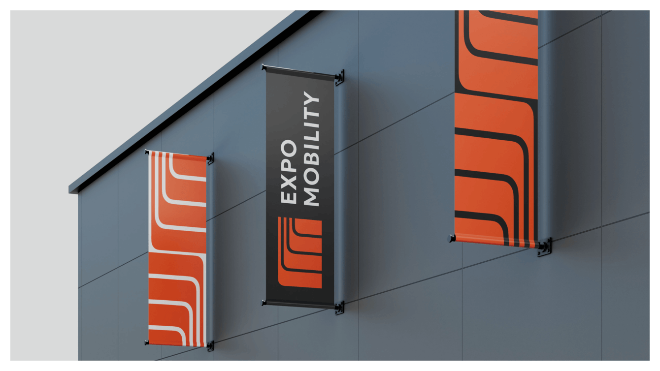 Линии логотипа символизируют дорогу, которая поворачивает в верном направлении и тем самым сообщает клиентам и партнерам бренда то, что, выбирая «Экспомобилити», они принимают правильные решения. В то же время они ассоциируются с мобильностью и гибкостью компании. Ритм линий, продолжающихся за пределами логотипа, подчеркивает «модульность» и широту спектра предлагаемых услуг.
