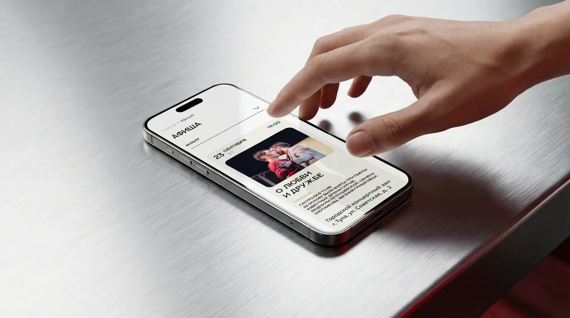 Пользовательский опыт построен на принципах простоты и прозрачности: крупные кнопки, предсказуемая структура, акцент на быстрый доступ к афише и покупке билетов, чёткая логика переходов между спектаклями, актерами, новостями. Несмотря на визуальную насыщенность, интерфейс остаётся интуитивным и лёгким.