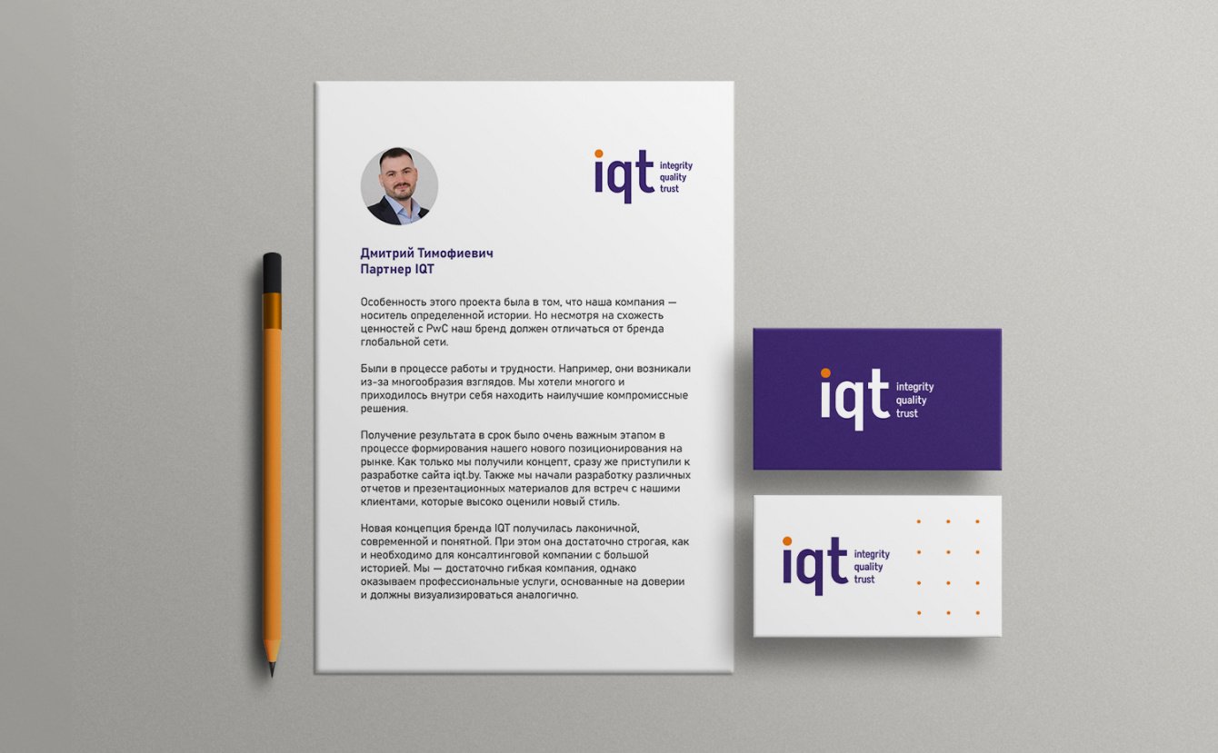 Цель проекта: Создать новый бренд iqt, сохранив преемственность от PwC в визуальном и смысловом наполнении.