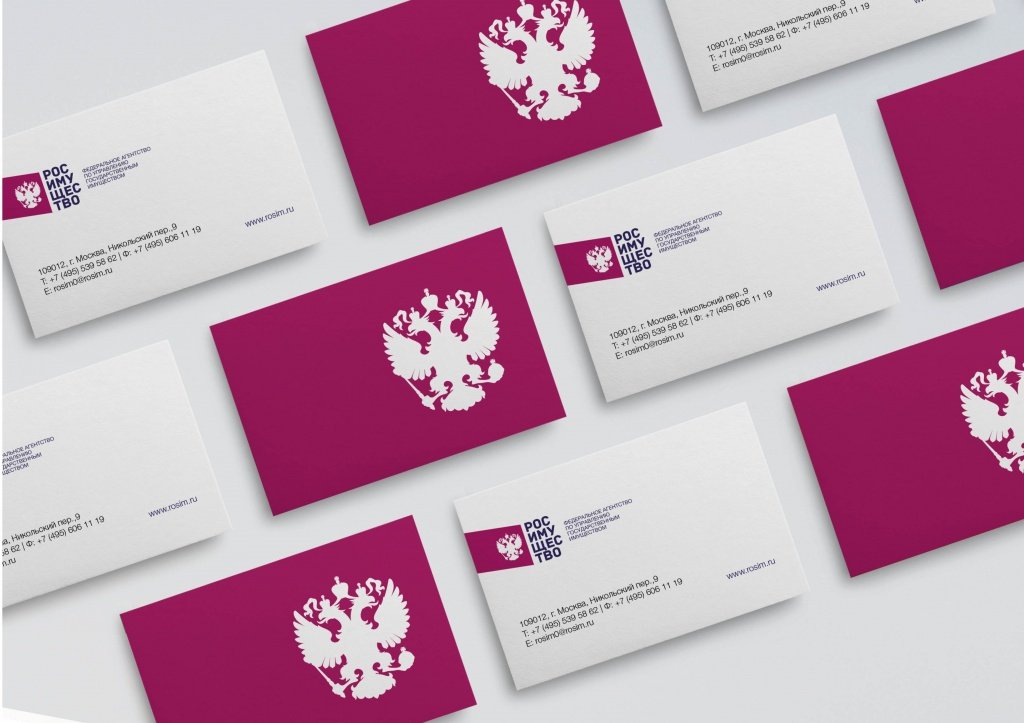 Все министерства и ведомства, согласно правилам, обязаны иметь собственный герб, который создается по геральдическим канонам. В результате символика, состоящая из «фирменных орлов» слишком однотипна и не способна осуществлять функцию идентификации, особенно в условиях информационного общества и соц. сетей. В этой связи ряд госорганов уже создали альтернативные логотипы, например, Минпромторг, Минтруд, Минсельхоз, Росреестр и др. Новая айдентика Росимущества – это симбиоз государственной символики и корпоративного дизайна. Орел, сильно отличающийся от гос. образца, был скорректирован и избавлен от мелких деталей. Динамичная бордовая полоса, в которую он помещен, выражает историческую преемственность и служение интересам страны – еще в 19 в. орденская лента использовалась как часть мундира госслужащего.