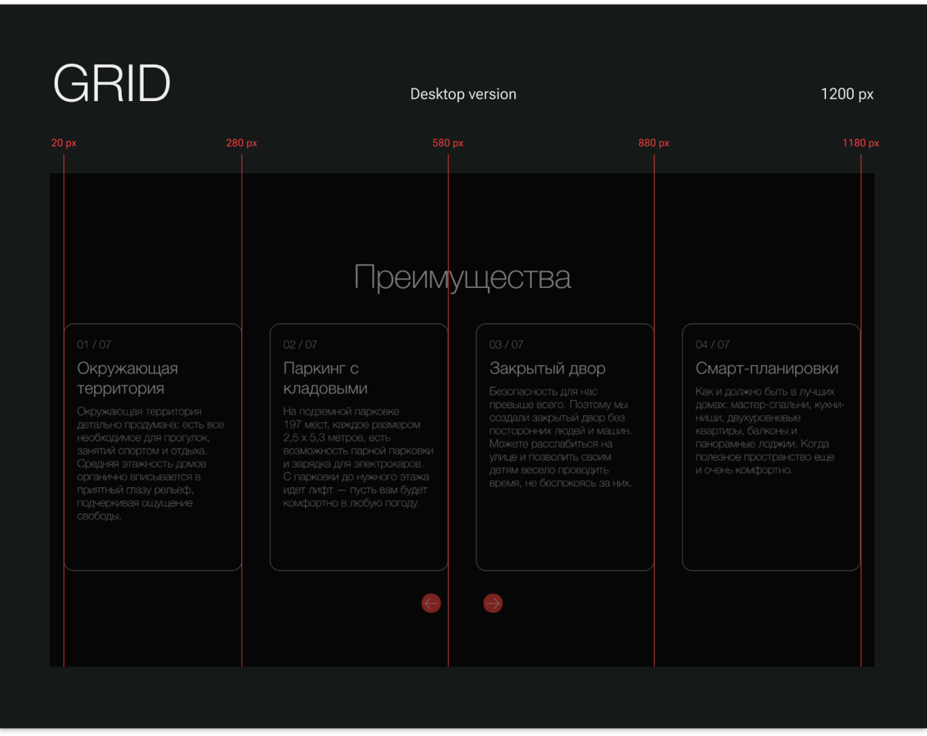 Актуализация дизайна сайта стала одним из этапов в обновлении айдентики жилого комплекса. Вместе с сайтом мы переверстали буклет жилого комплекса, тем самым выдержав единый стиль позиционирования. Новый дизайн больше соответствует ценовому сегменту жилого комплекса, а доработанная структура повышает качество и количество лидов.