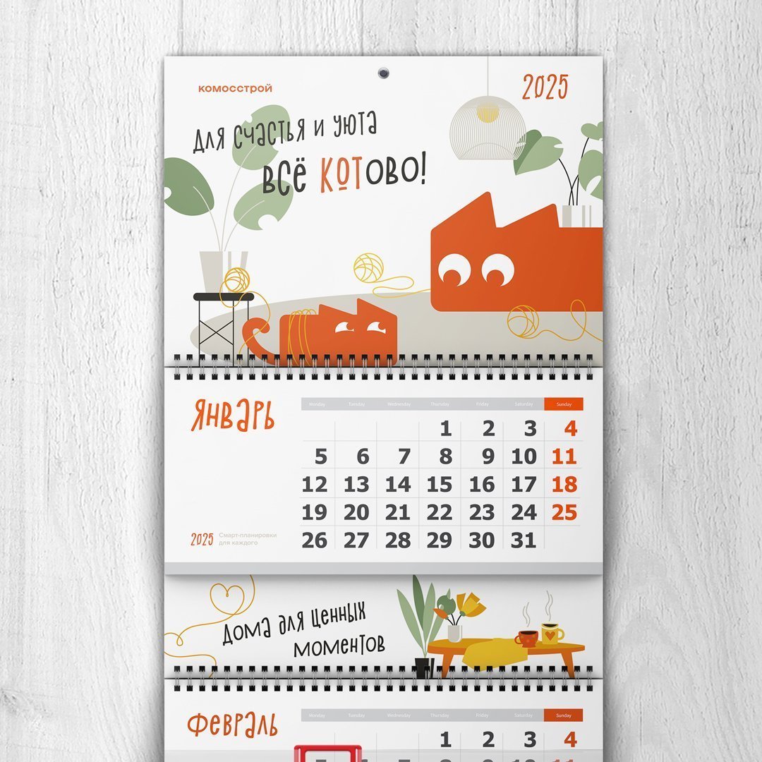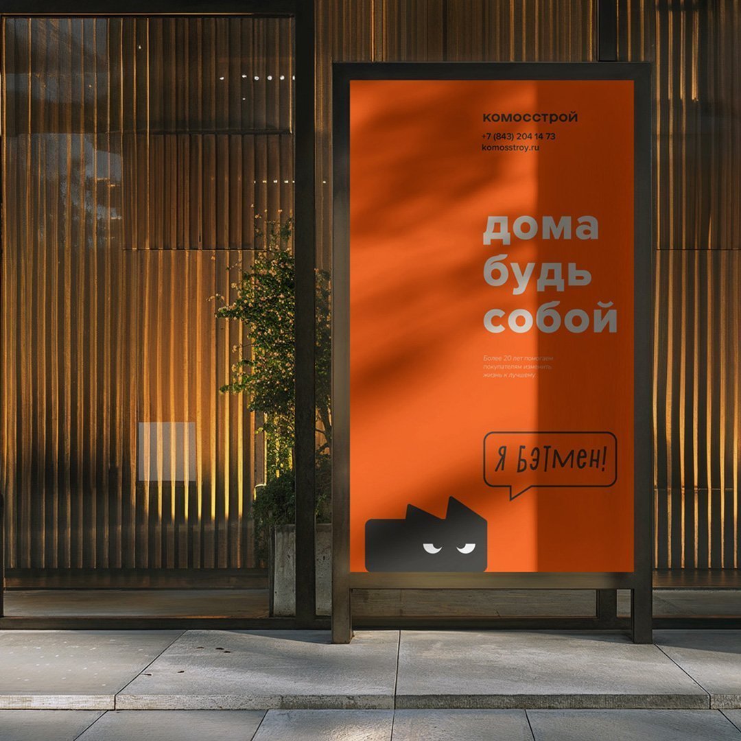 Нам нужен был находящий эмоциональный отклик у аудитории, живой, эмпатичный и теплый бренд, вызывающий прямую ассоциацию с уютом и домом и в то же время настроенческий и характерный. Решением стала трансформация давнего маскота КОМОССТРОЙ — рыжего кота, который обрел актуальную гармоничную форму и стал основой фирменного знака и новой динамичной и яркой айдентики.