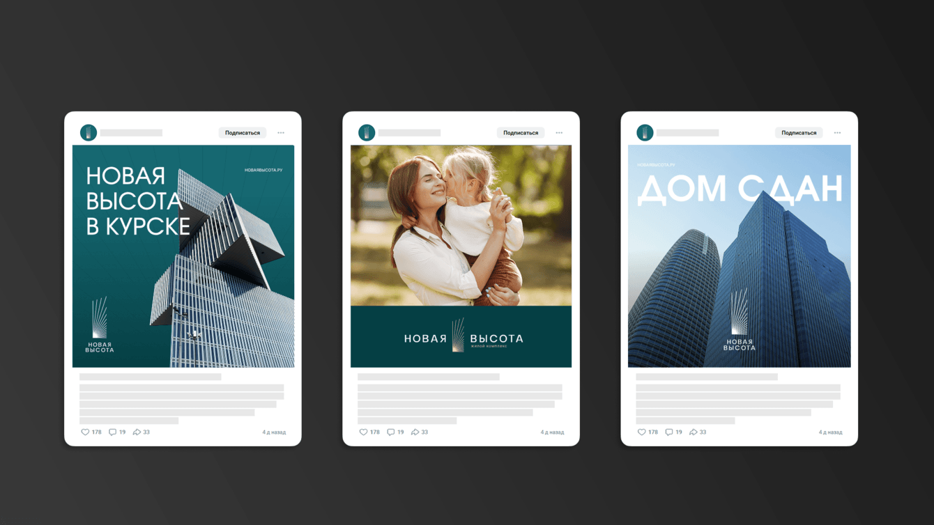 Жилой комплекс в г. Курск в ходе доработок проекта перешел из класса Комфорт плюс в бизнес-класс. В связи с этим необходимо было обновить позиционирование и айдентику бренда, подчеркнув новые преимущества и изменив тон коммуникации на более подходящий новой целевой аудитории комплекса.