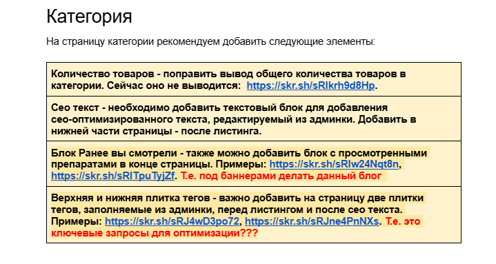 Также были добавлены новые блоки с развернутыми описаниями каждого лекарственного средства - его состава, действия, показаний к применению, дозировок и противопоказаний. Для всех изображений были оптимизированы alt-теги с учетом товарной семантики.