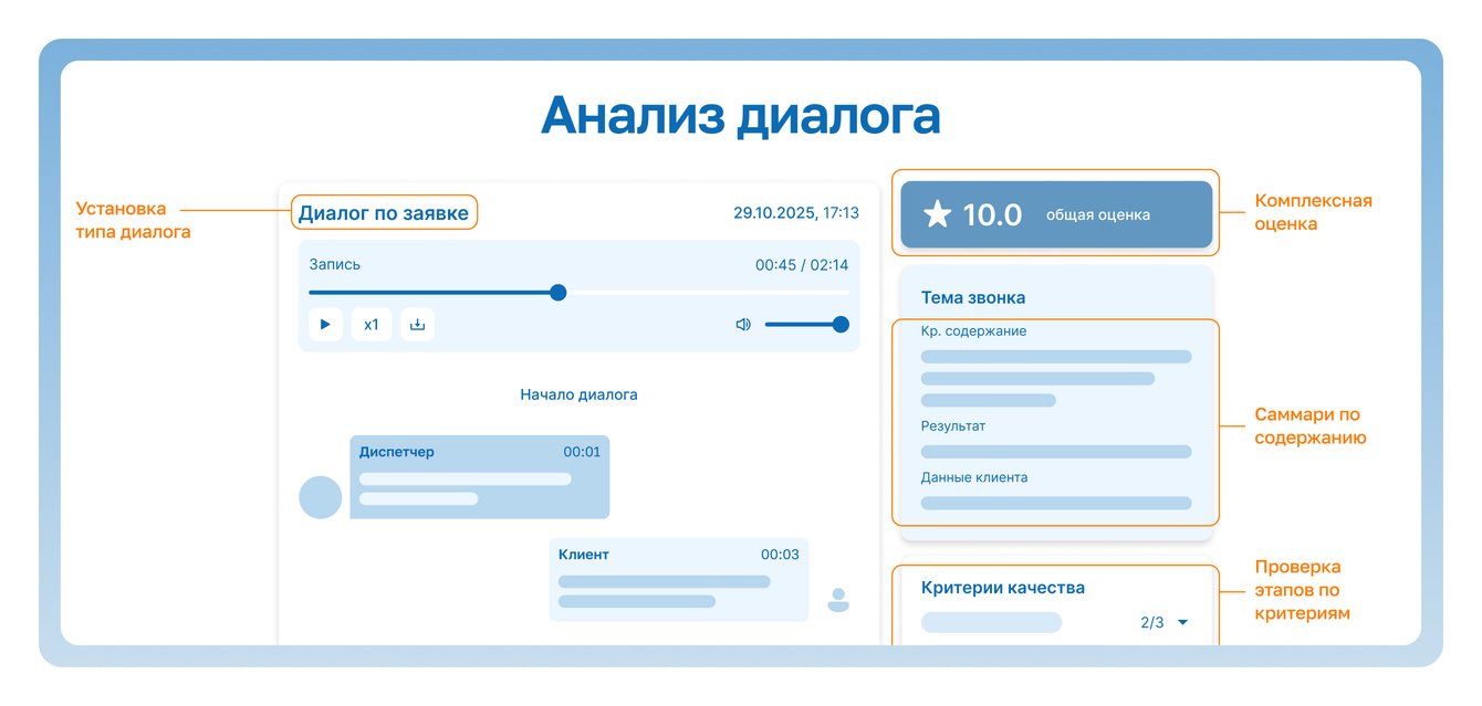 Теперь аналитика звонка доступна меньше, чем за 1 минуту. Руководитель может открыть конкретный диалог, увидеть, что диспетчер пропустил этап уточнения проблемы, и сразу дать точечную обратную связь.