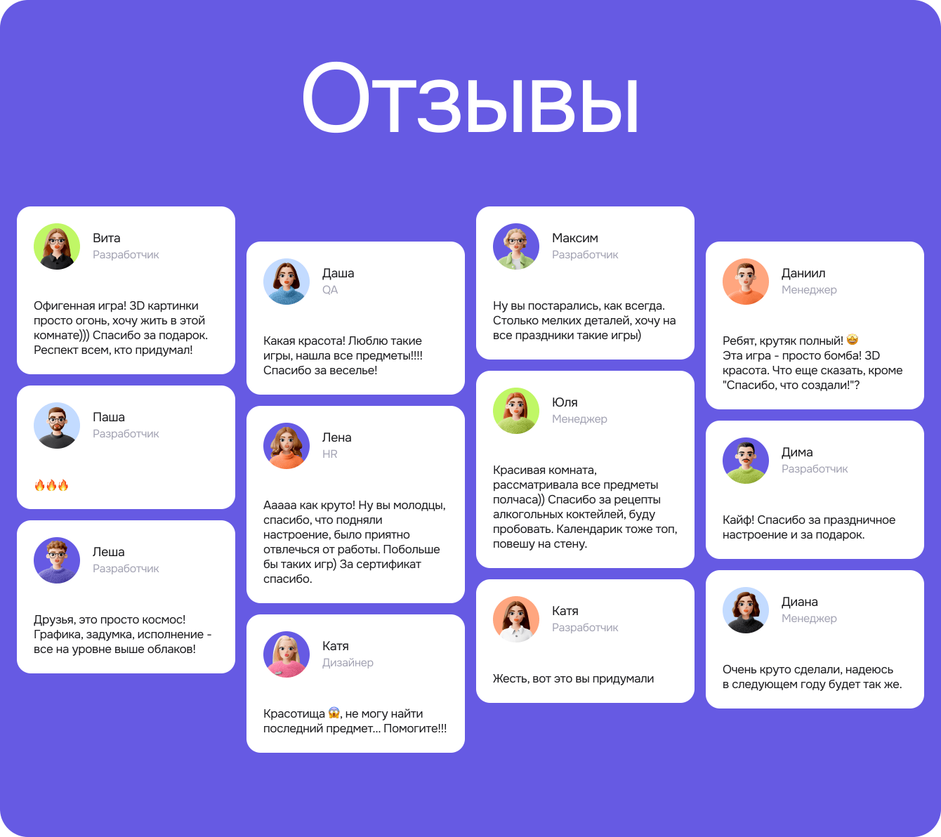 Итак, мы собрались использовать нашу экспертизу в области цифровых технологий, чтобы создать веб-игру, которая оставит незабываемые впечатления у всех участников и принесет им немало приятных сюрпризов.