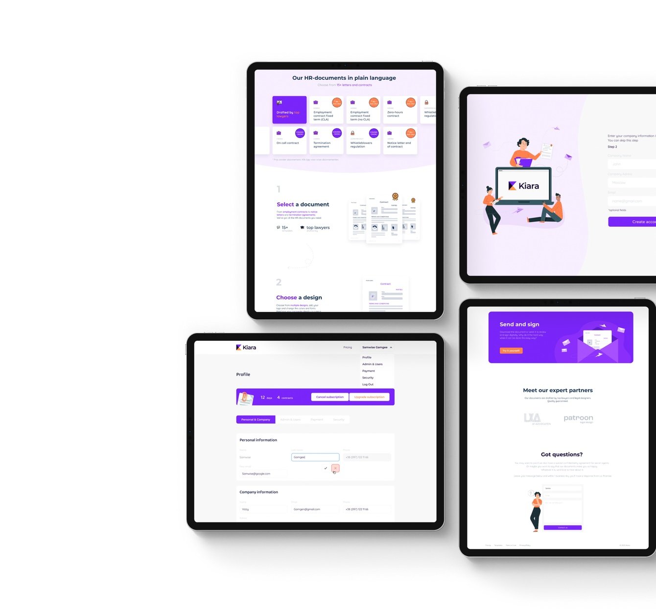 Основная цель с точки зрения дизайна - создать доверительные отношения с пользователем, а также детально объяснить процесс создания контракта, для чего мы использовали пошаговую анимацию заполнения документа.