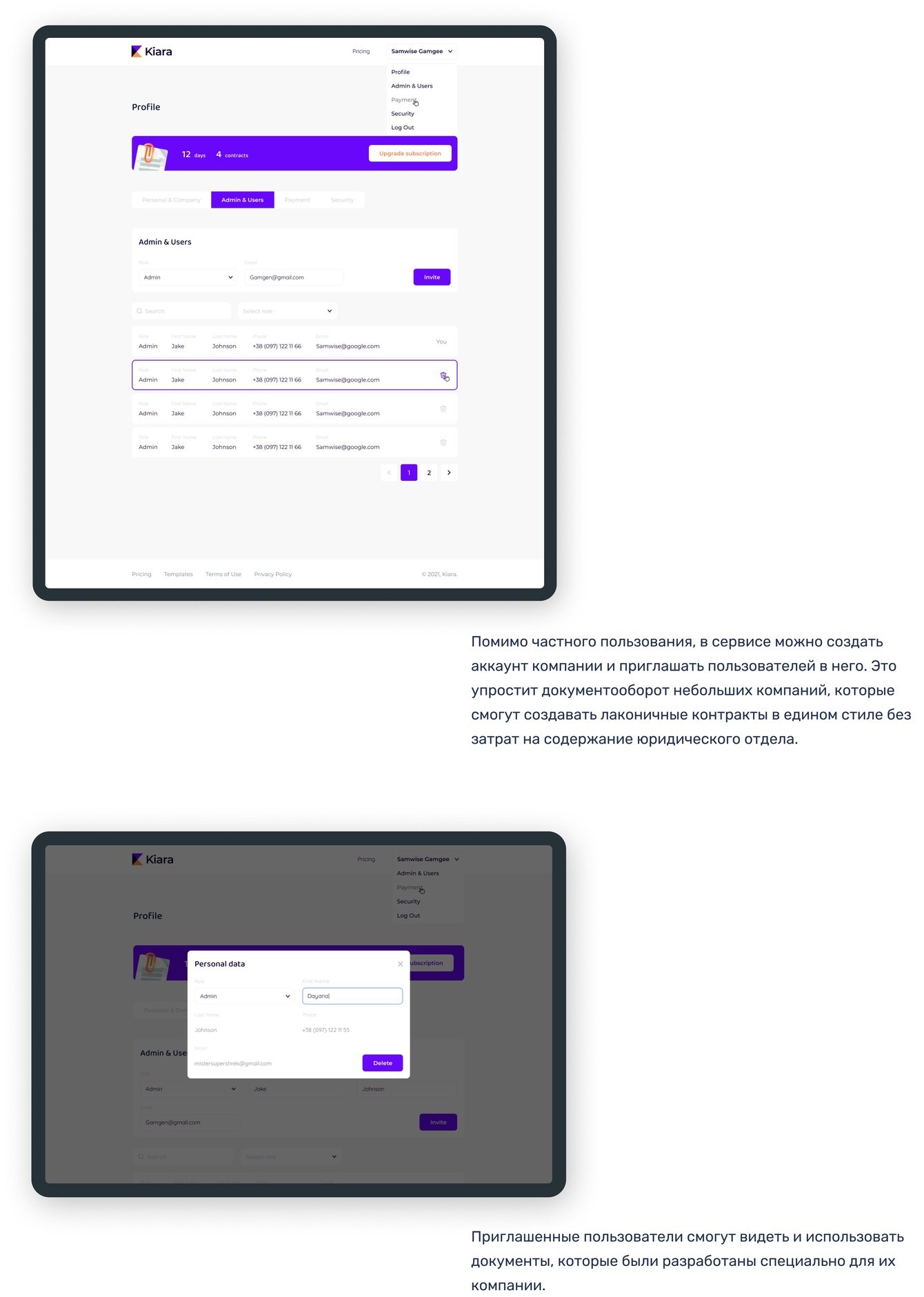 Основной задачей было разработать сервис для создания контрактов и договоров без дополнительного обращения к юристам.