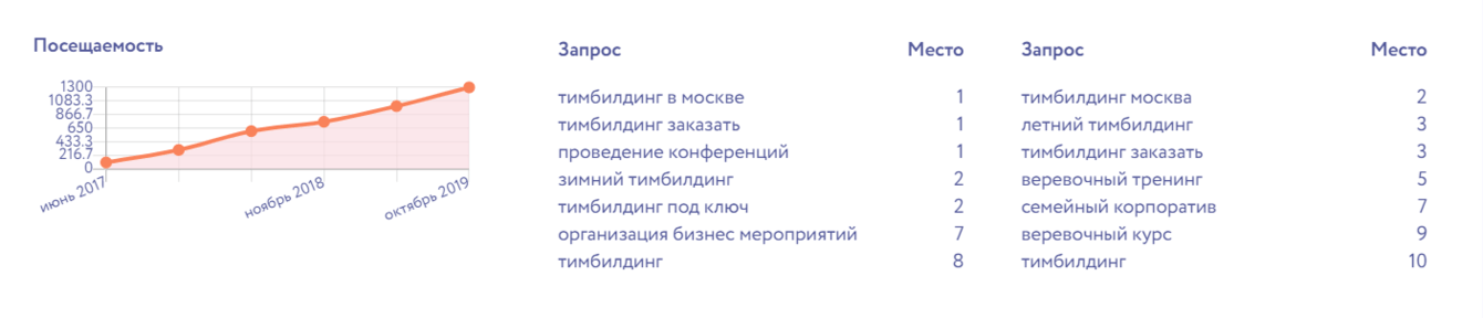 Необходимо было повысить целевую посещаемость (заказ тимбилдингов и корпоративов на природе). Довести число целевых посетителей из поиска до 1000 человек в месяц.
