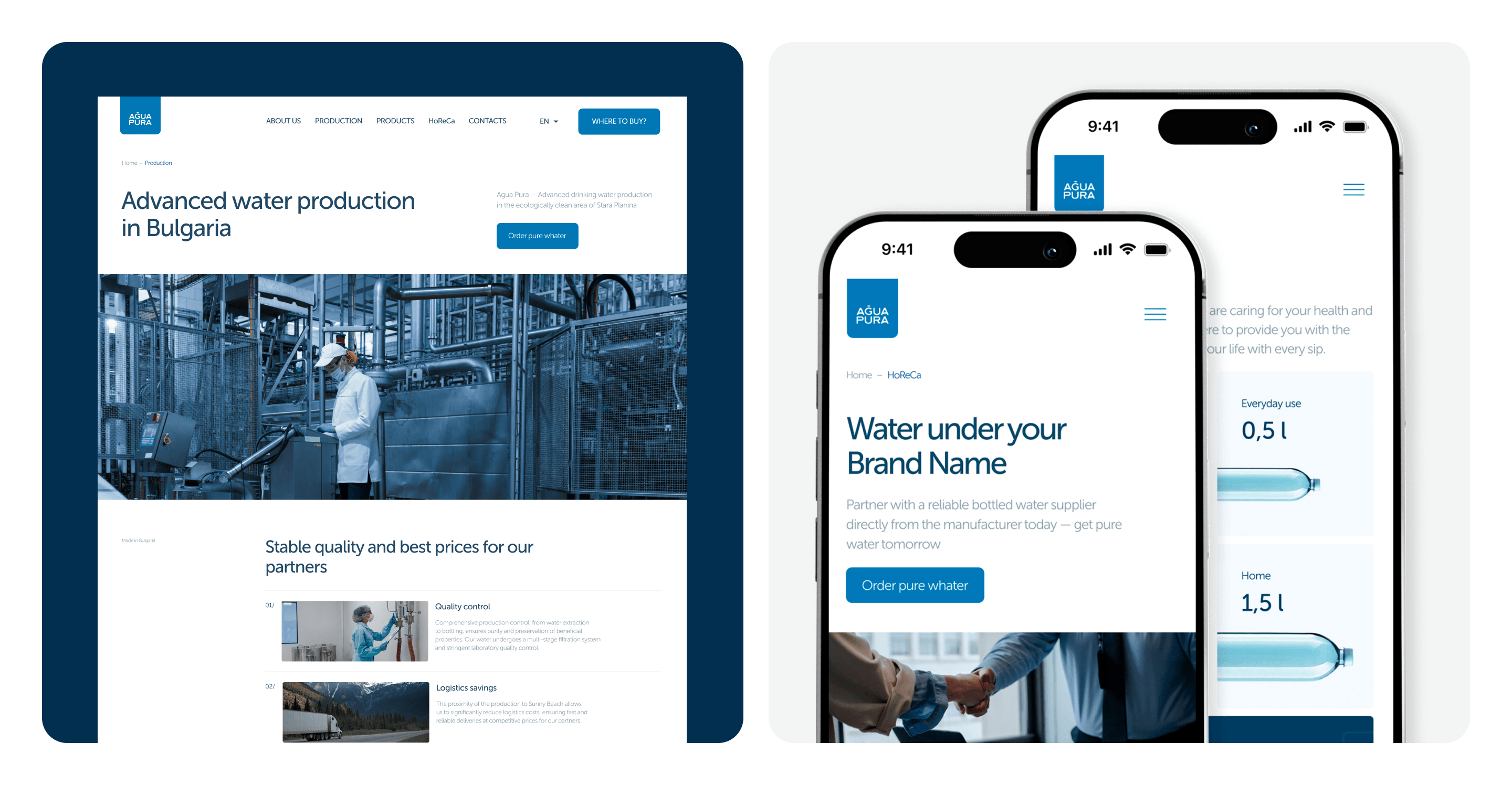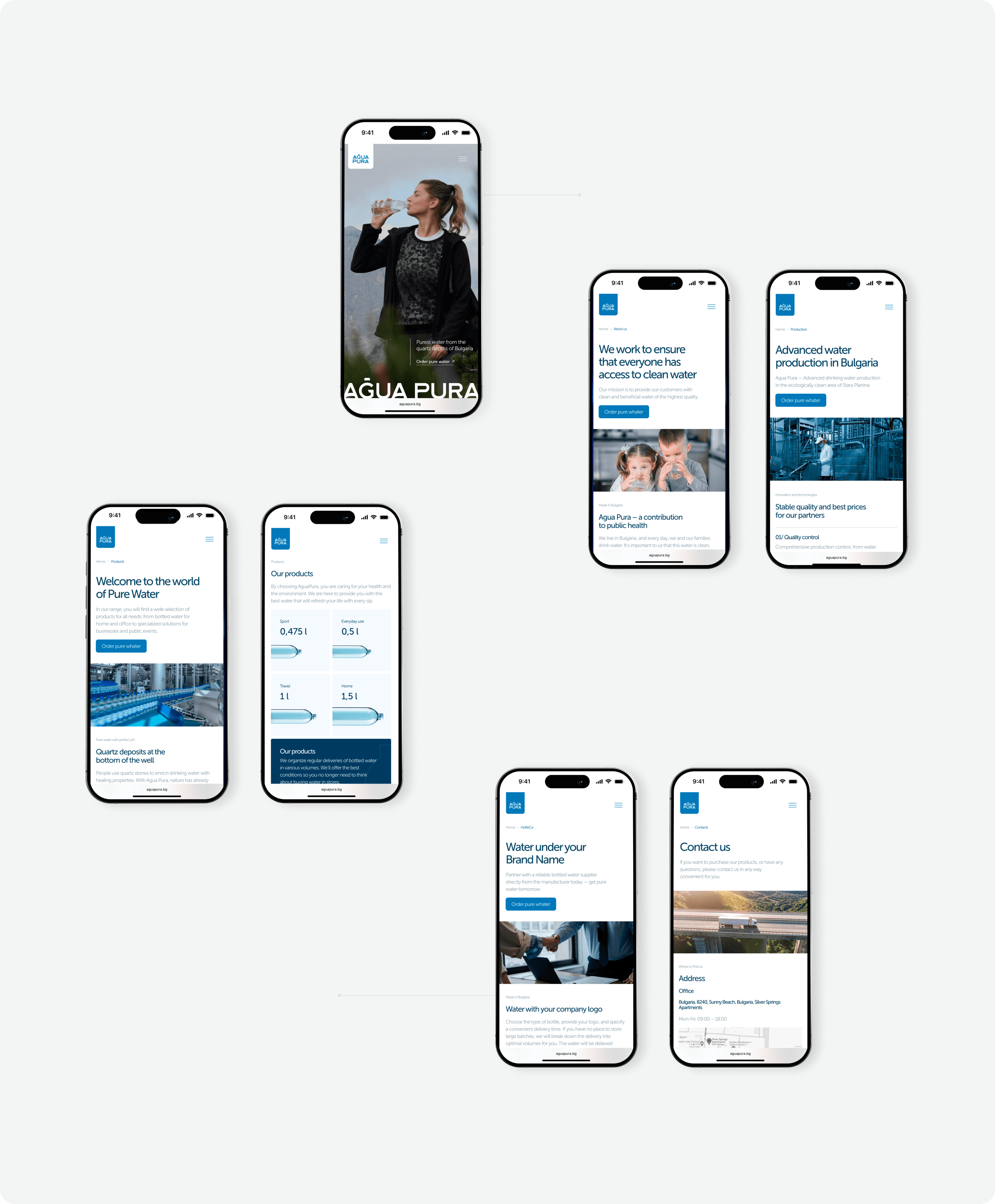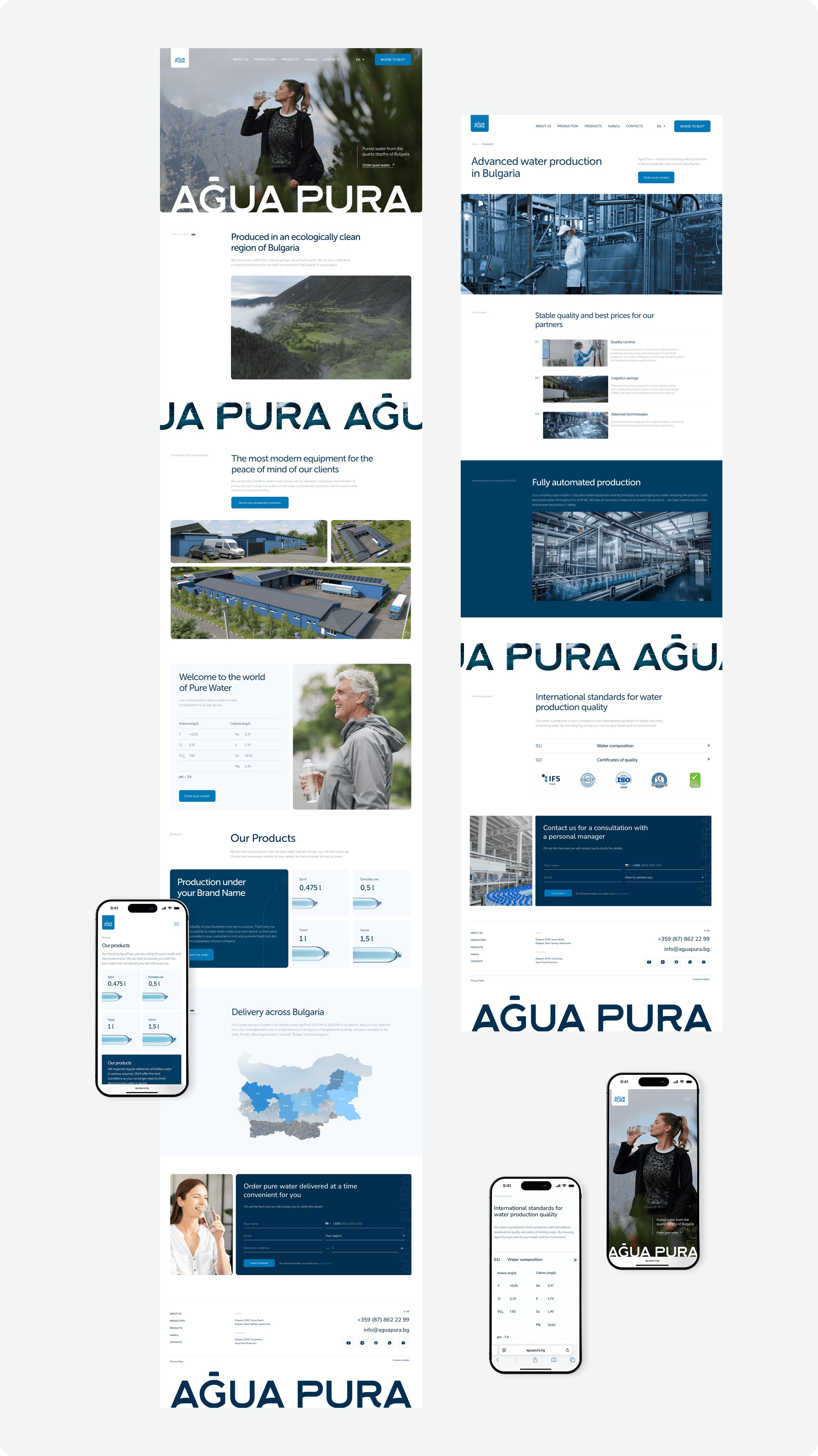 У Agua Pura был продукт высокого качества, но не было современного сайта и фирменного стиля, который бы транслировал ценности бренда. Компания стремилась выйти на новые рынки, но без визуальной целостности это было сложно.