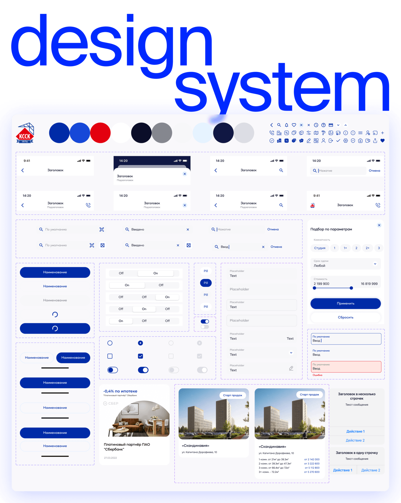 Редизайн сайта для продажи жилой недвижимости стал первым шагом к полному рестайлингу всех направлений КССК, представленных в интернете. Мы расширили первоначальный концепт от клиента, взяли самый сок из референсов и отрисовали каждую страницу сайта. Результат — дизайн-система для всех сайтов крупного бренда.