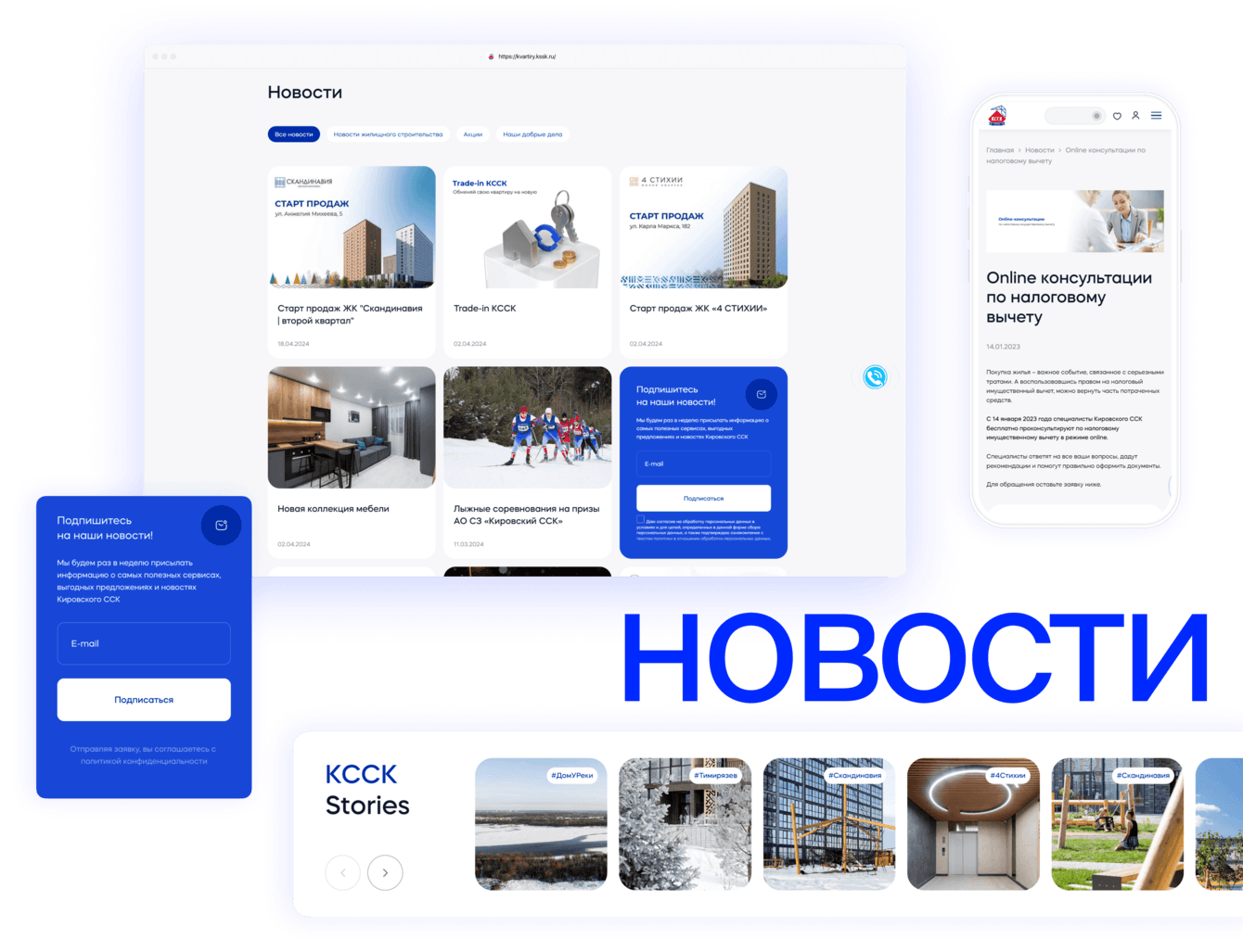 Потенциальные покупатели могут подписаться на рассылку и узнавать первыми о полезных сервисах, выгодных предложениях и новостях Кировского ССК.