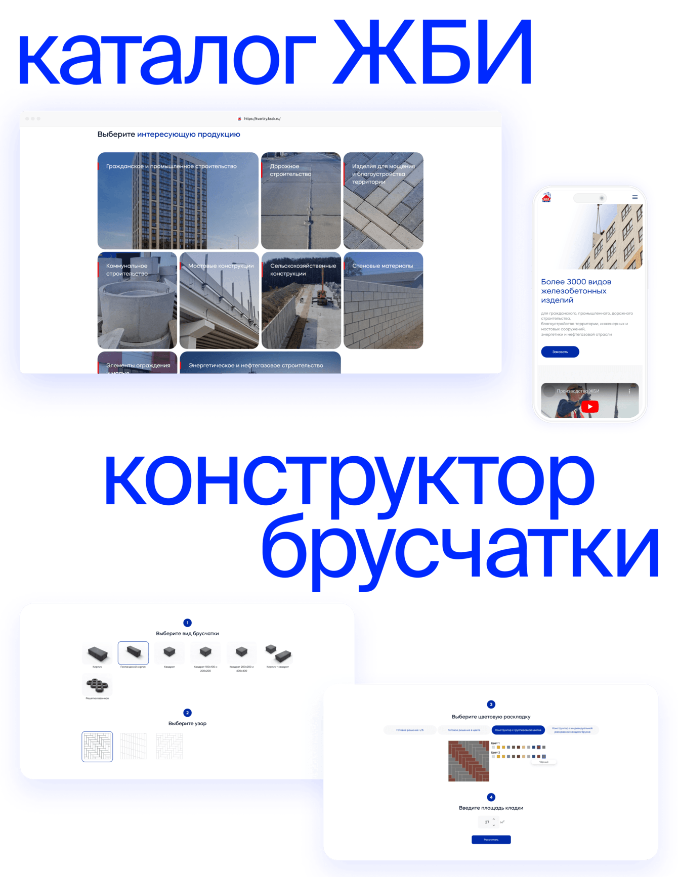 В новой версии представили каталог товаров в более комфортном виде для клиентов, автоматизировали выгрузку из 1С, проработали навигацию, а также создали новый функционал — калькулятор брусчатки, с возможностью выбрать цвет и рисунок.