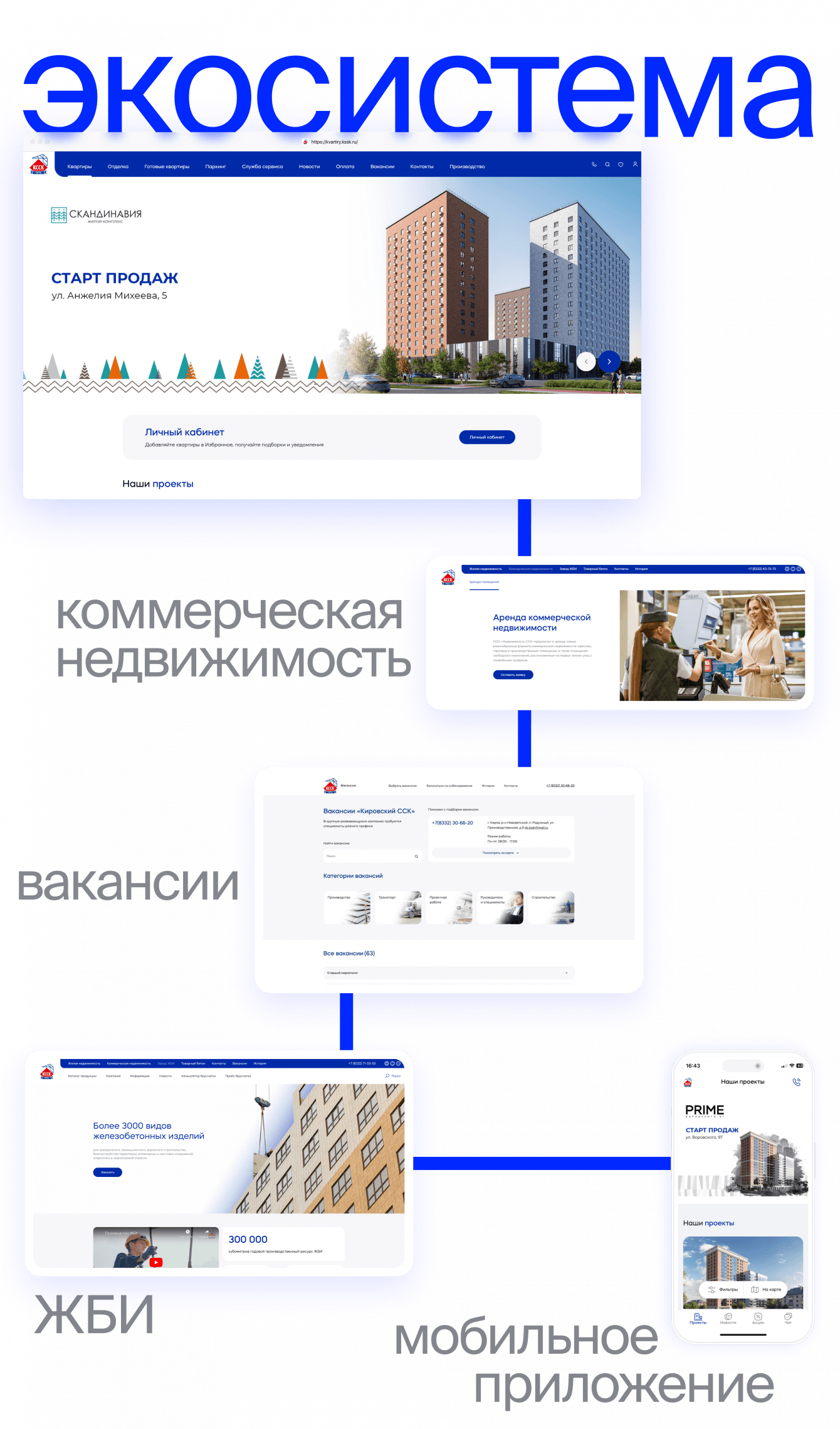 Провести редизайн уже имеющихся элементов цифровой экосистемы строительного концерна и создать новые: