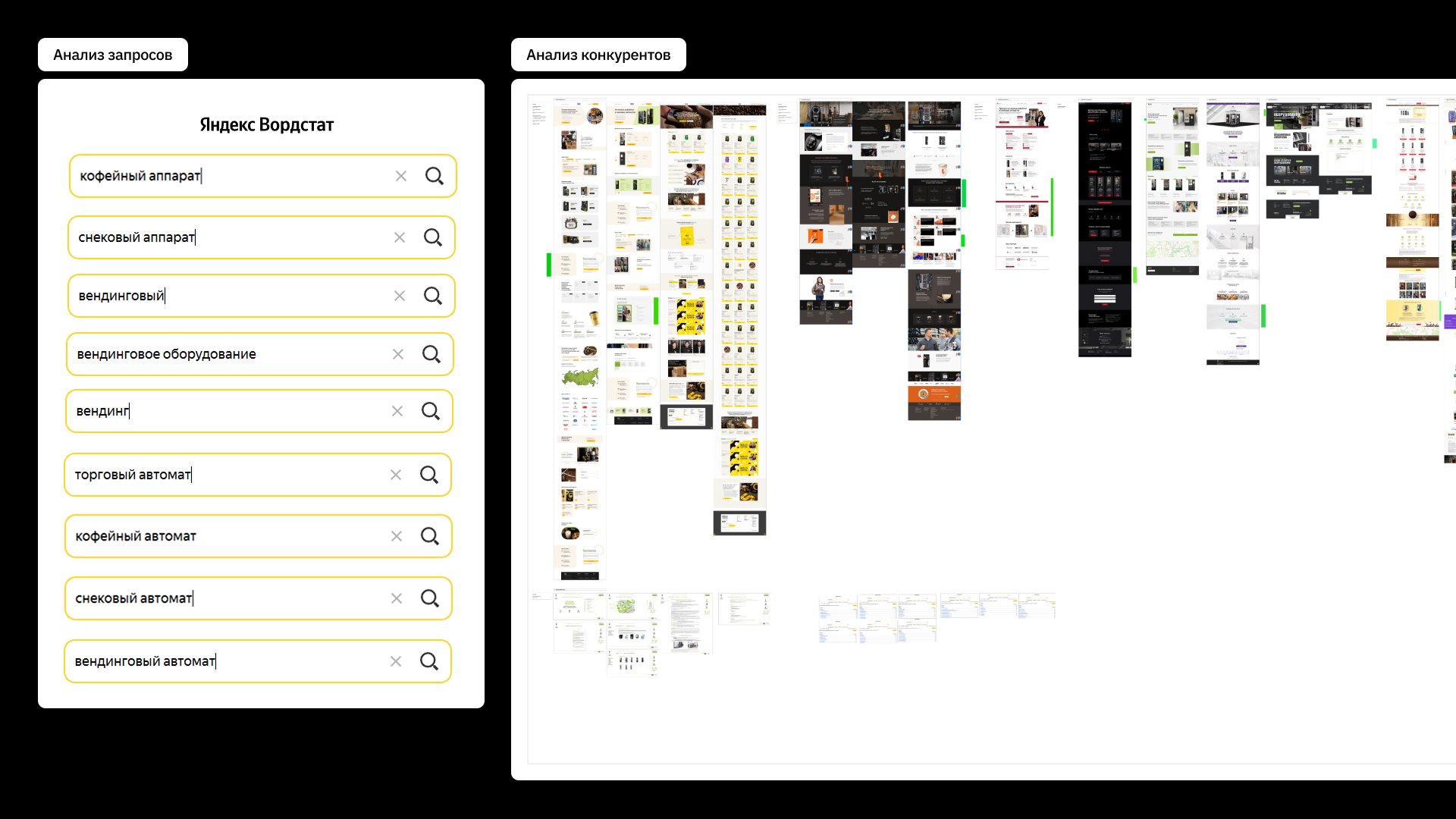 Дизайн у большинства конкурентов устаревший, текст также не структурирован. При этом встречались хорошие смыслы, которые можно было взять на вооружение. Из всего этого сложилось понимание, как выстроить структуру сайта.