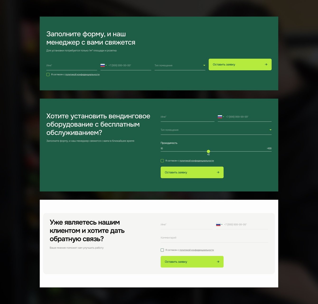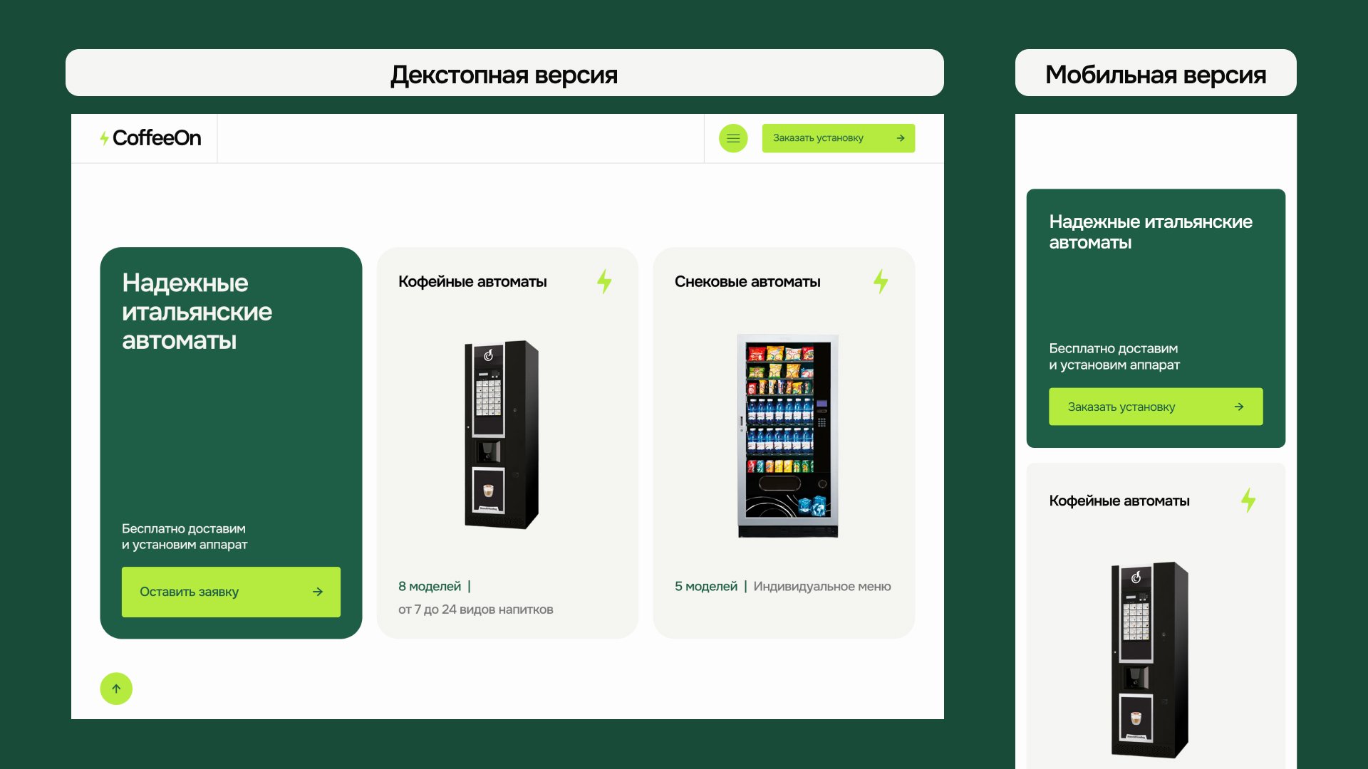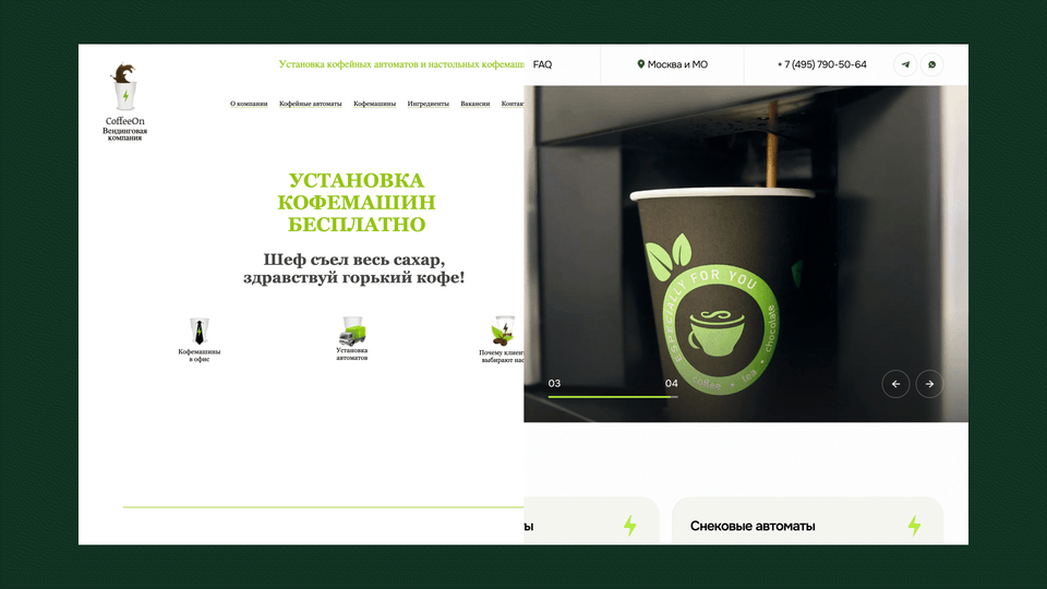 Основная цель редизайна — сделать так, чтобы приходило больше лидов. Важно было продать именно услугу подбора, установки, обслуживания, а не вендинговый аппарат.