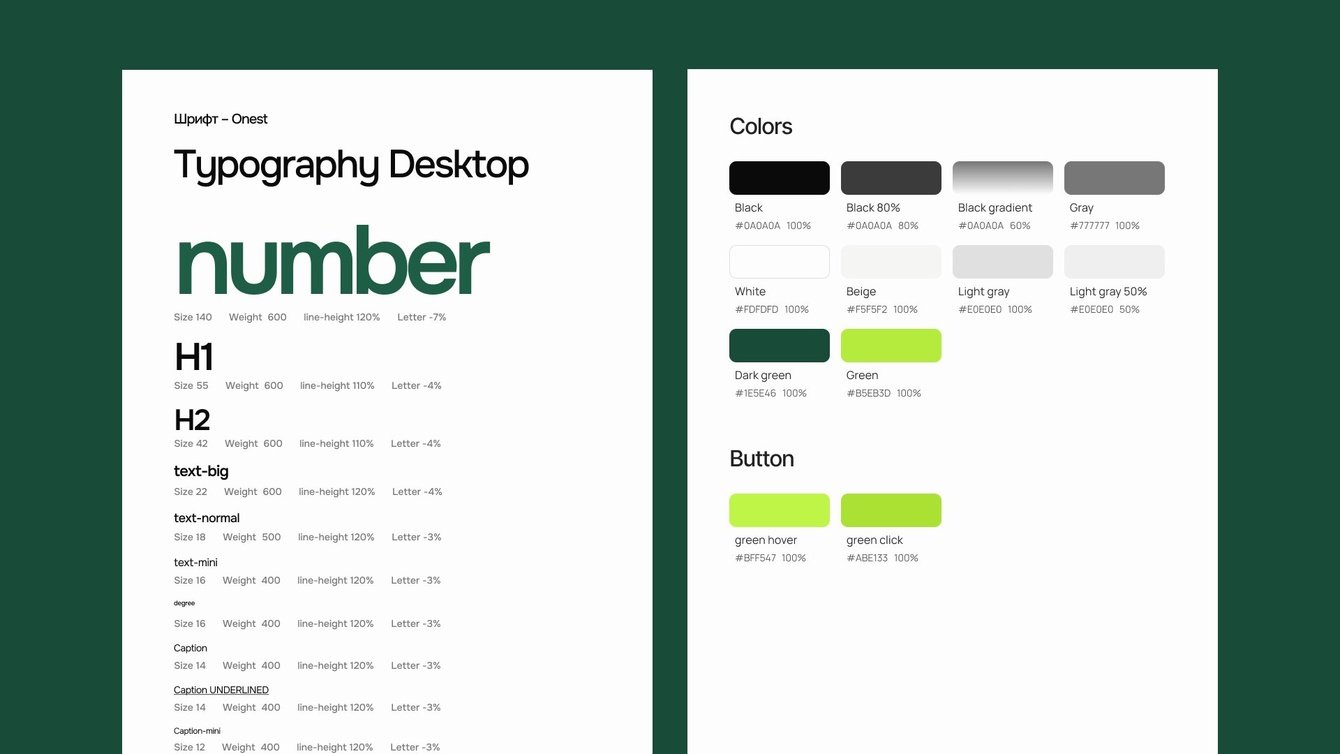 Фирменного стиля у компании не было, поэтому отталкивались от логотипа, который к тому моменту мы уже освежили. В качестве шрифта выбрали Onest — классический, легко считывается и при этом передает ощущение стабильности и серьезного подхода.