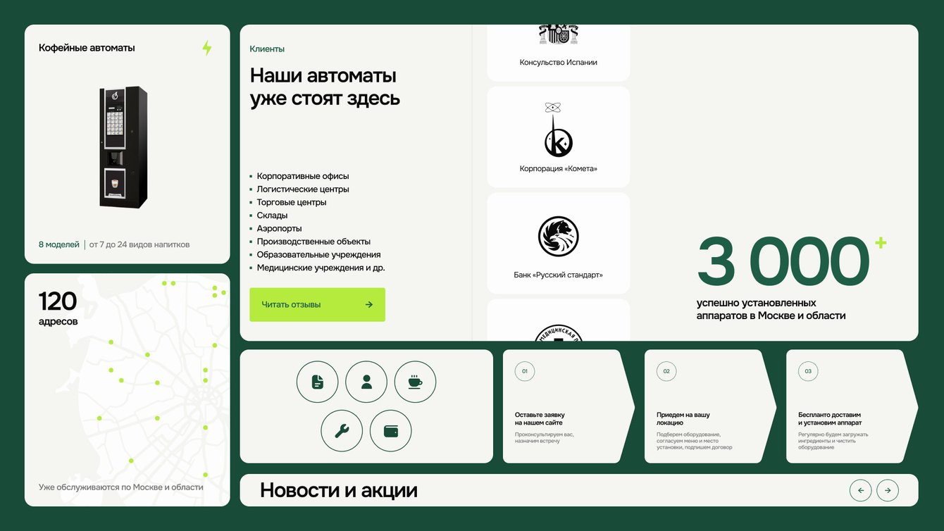 Основная цель редизайна — сделать так, чтобы сайт стал понятным и простым во взаимодействии. Важно было продать именно услугу подбора, установки, обслуживания, а не вендинговый аппарат.