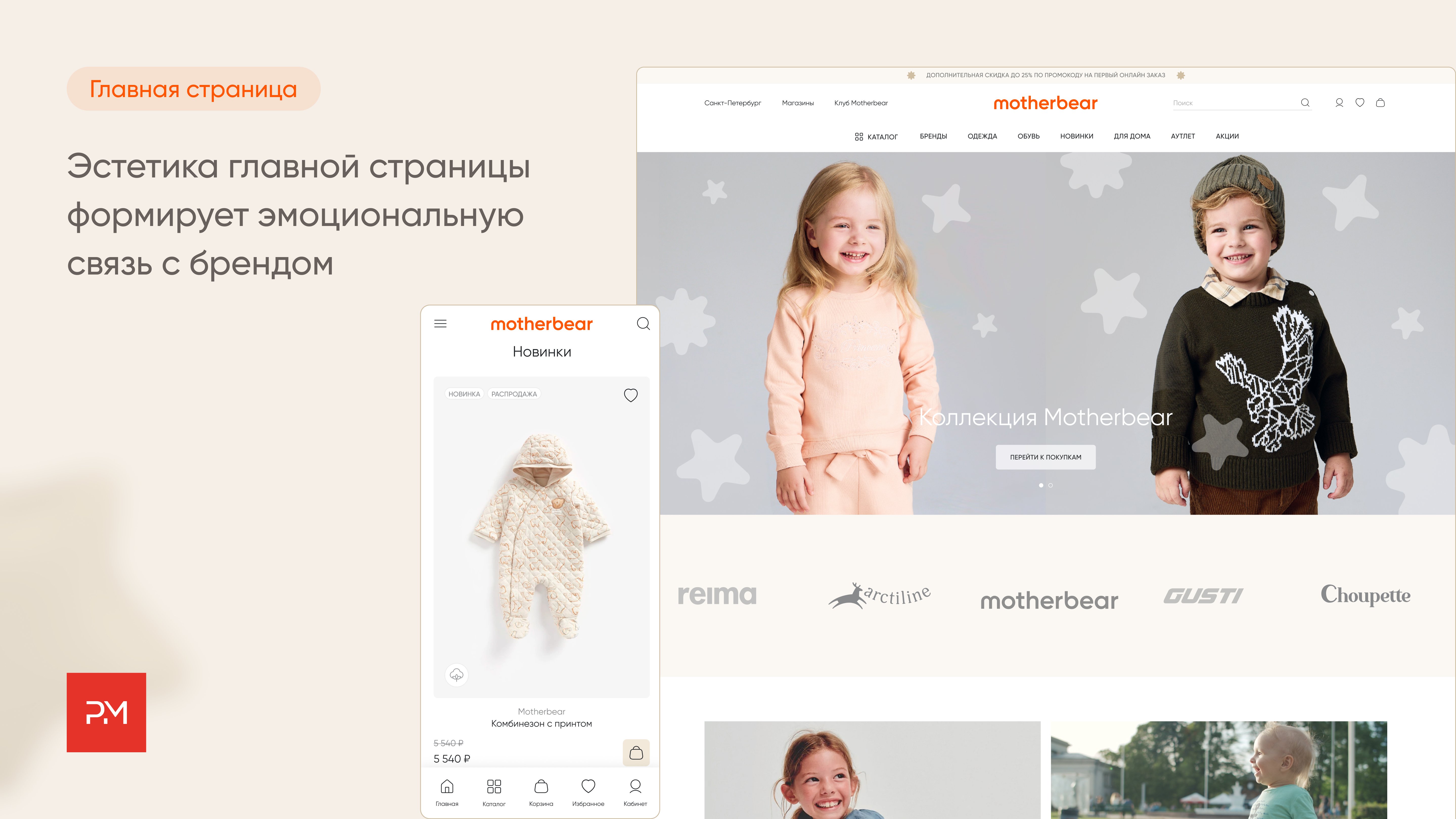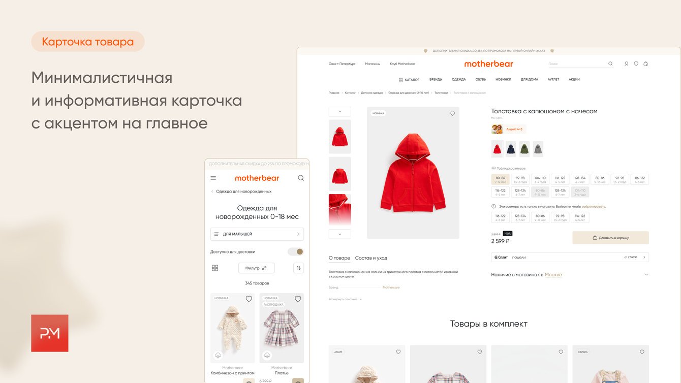 Progressive Media сотрудничает с компанией ДжамильКо (владельцем бренда Motherbear) с 2017 года. В 2023 году по запросу компании в короткие сроки был запущена MVP-версия интернет-магазина, которая все это время дорабатывалась и развивалась.