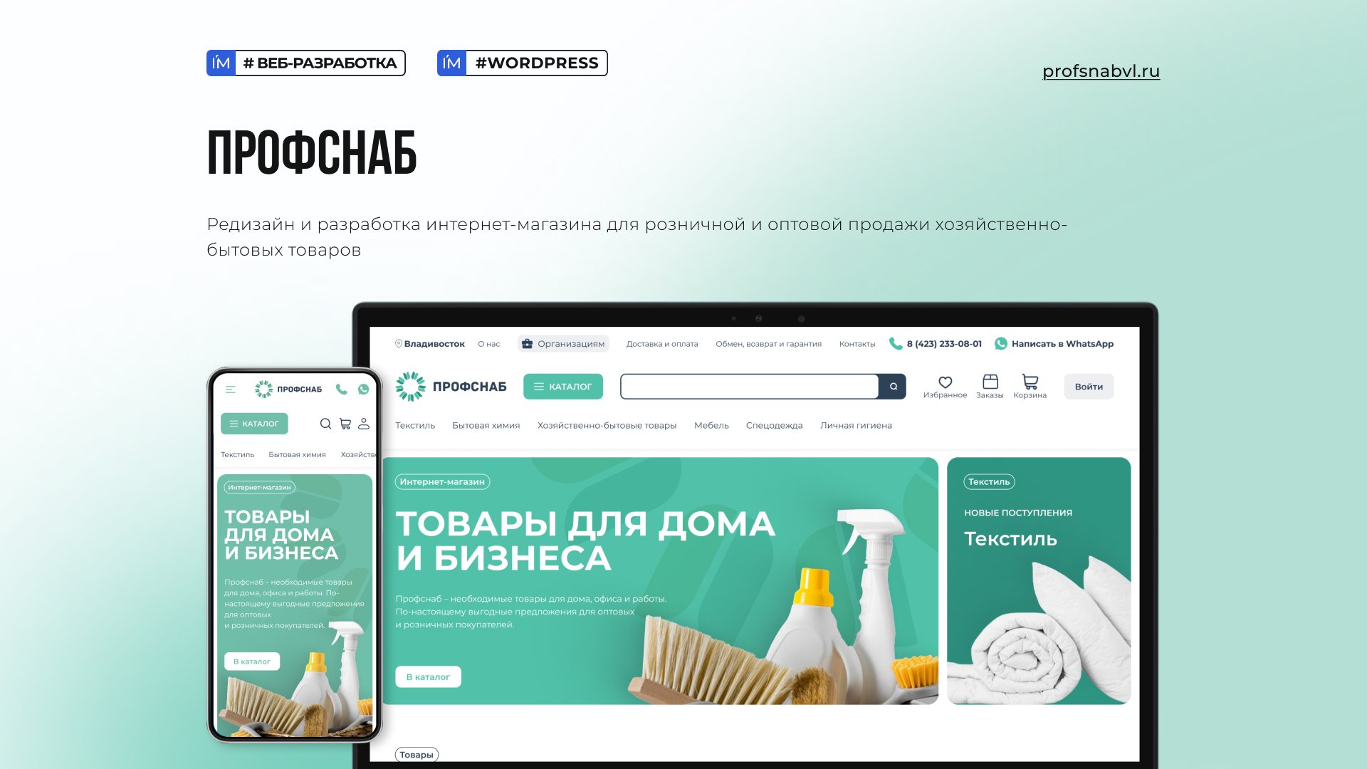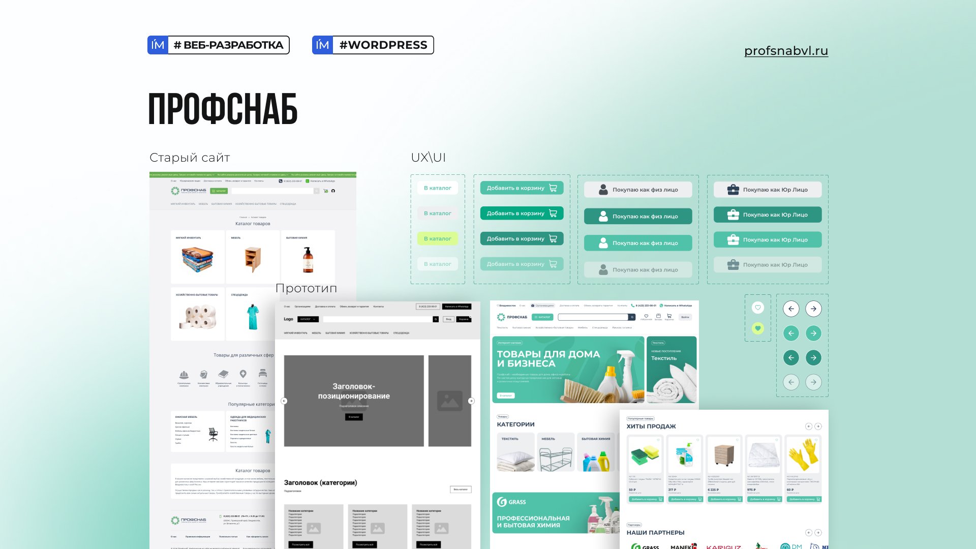 Компания Профснаб, поставляющая хозяйственные товары для предприятий и организаций, обратилась с запросом на полный редизайн сайта. Основные цели: